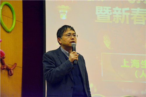 上海生科院李林院長(zhǎng)通過視頻向同學(xué)們發(fā)來了新年祝福。倪福弟為本次活動(dòng)致辭,他總結(jié)回顧了上海生科院(人口健康領(lǐng)域)2017年發(fā)生的重要事件,展望了新一年的發(fā)展愿景,并祝愿活動(dòng)圓滿舉行。