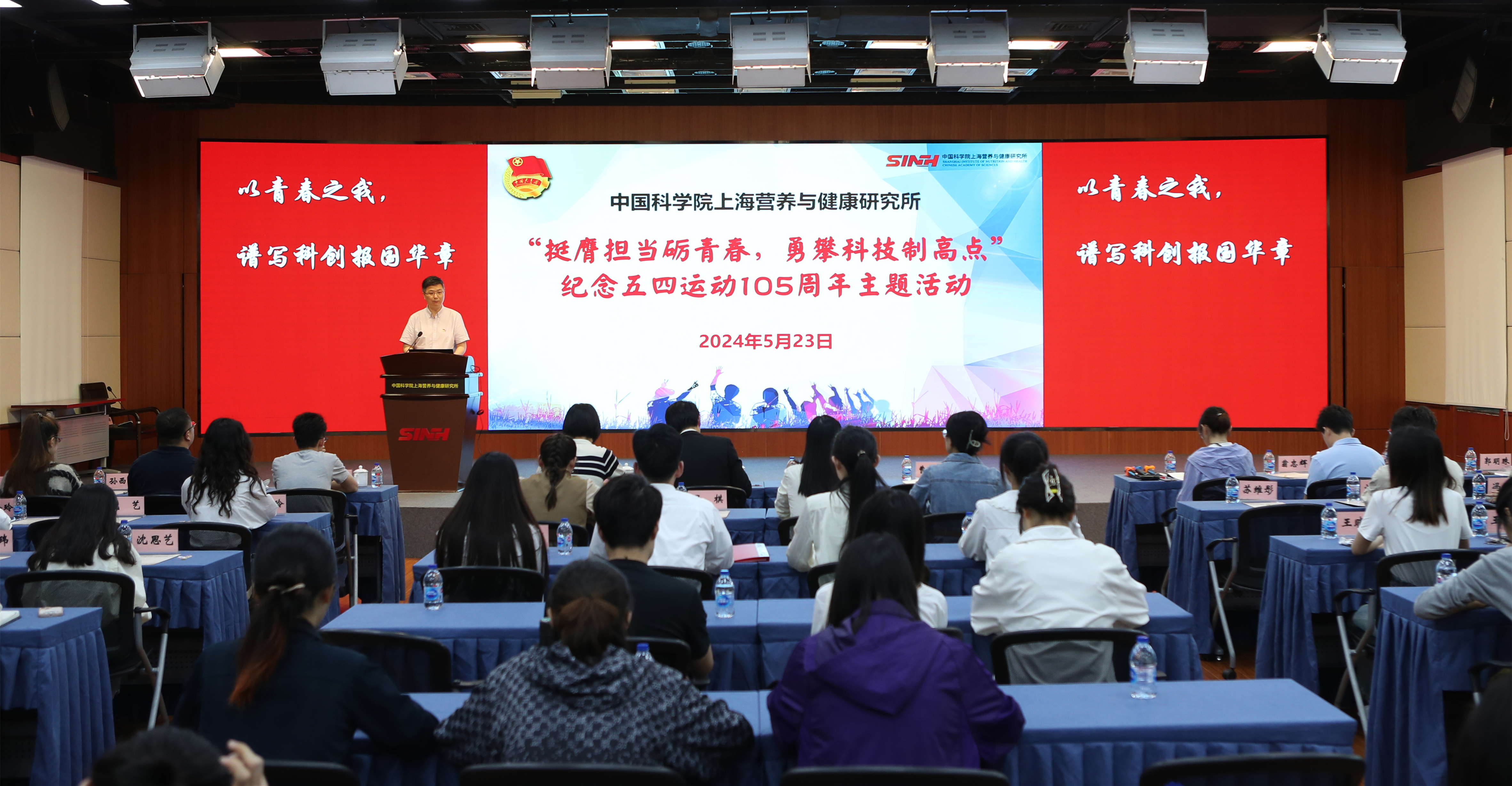 5月23日,中國科學(xué)院上海營養(yǎng)與健康研究所舉行“挺膺擔當?shù)Z青春,勇攀科技制高點”紀念五四運動105周年青年主題活動。上海市科技團工委書記胡元穎,中國科學(xué)院上海分院人事人才處副處長、機關(guān)與直屬單位團委書記朱泰來,中國科學(xué)院上海營養(yǎng)與健康研究所黨委書記瞿榮輝,紀委書記、工會主席曹永出席活動。各團支部代表、優(yōu)秀青年、研究生及青年職工代表等100余人參加?;顒佑蔂I養(yǎng)與健康所團委書記顧晶晶主持。