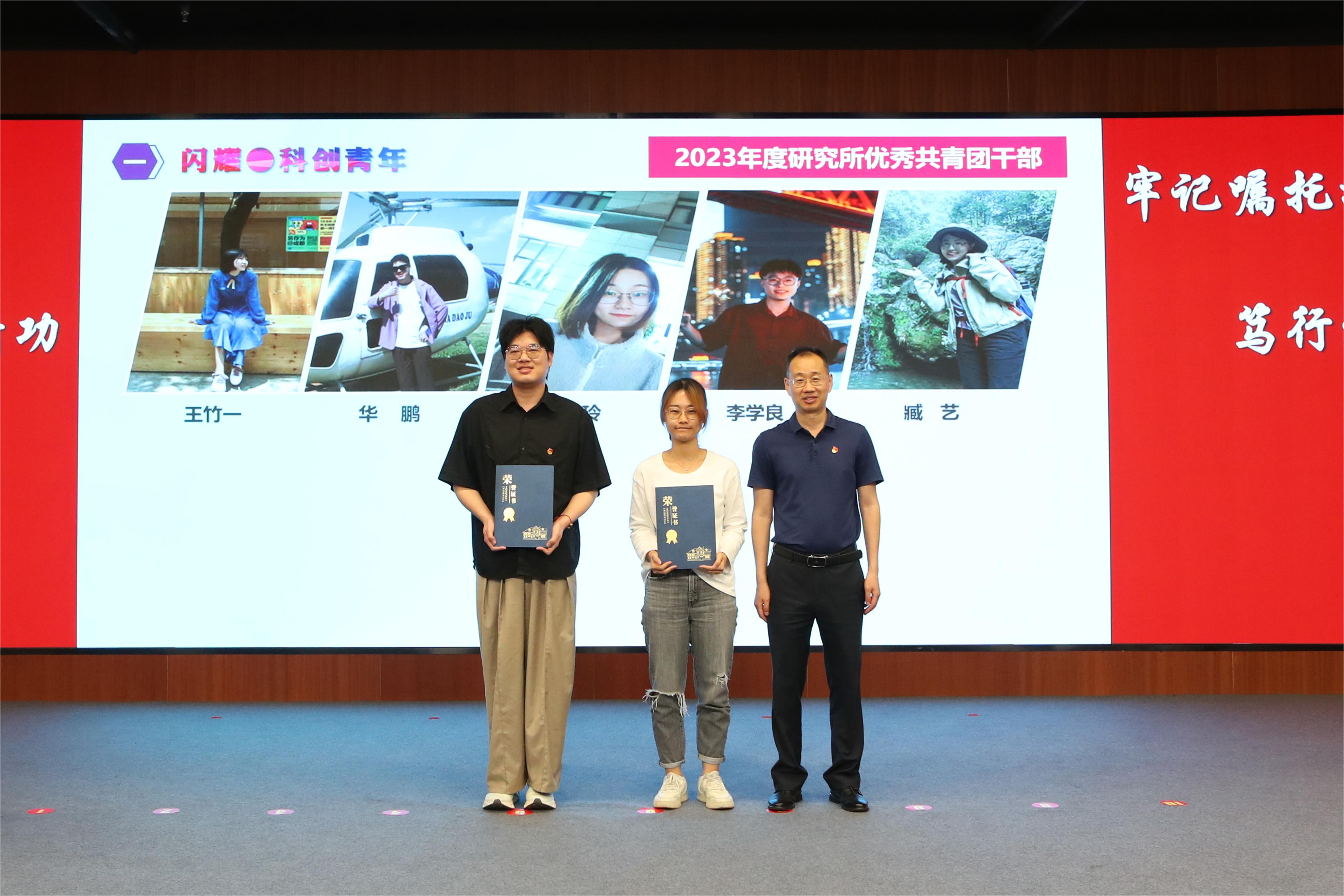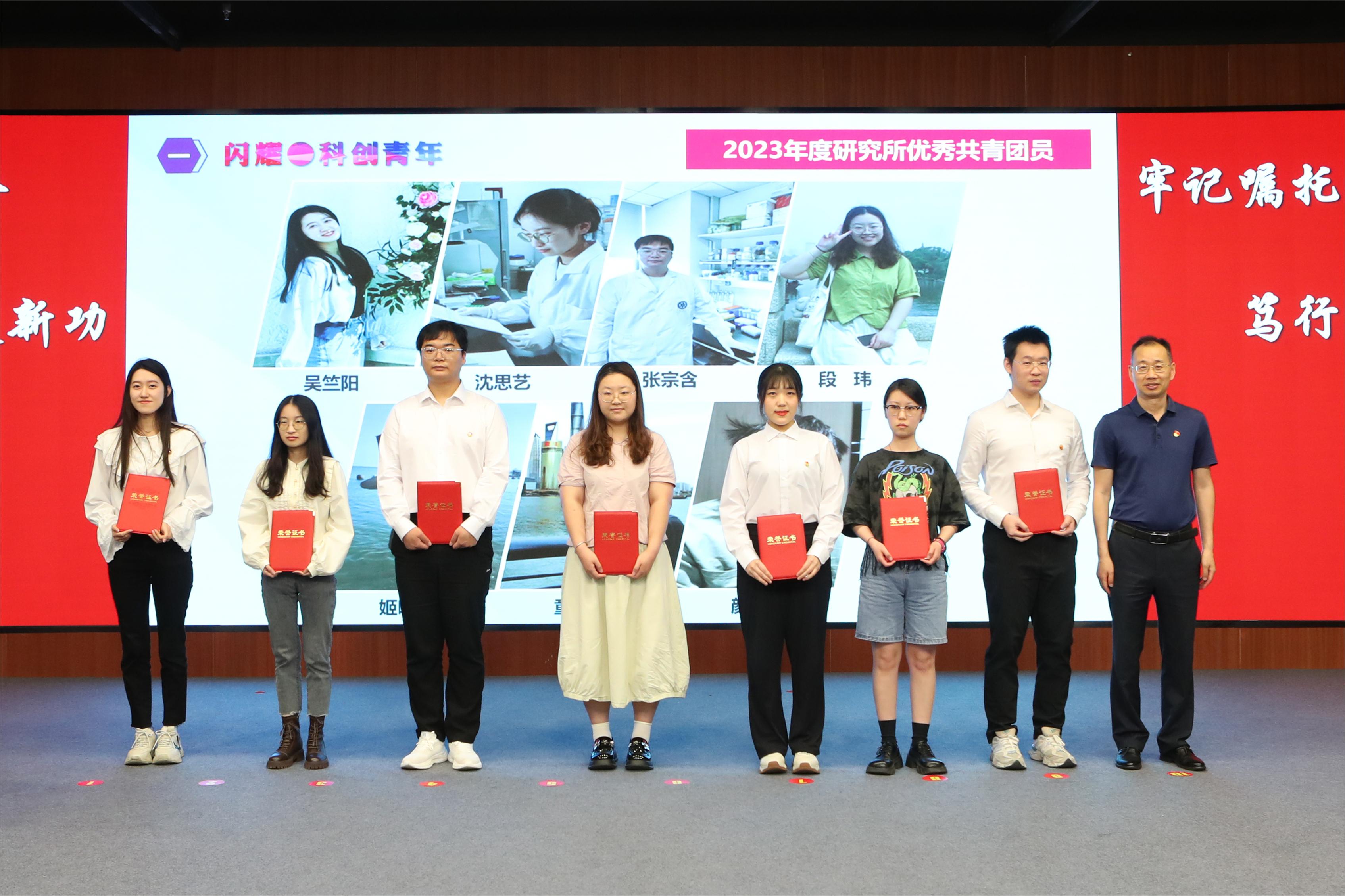 瞿榮輝為獲得“中國科學(xué)院優(yōu)秀共青團干部”、“中國科學(xué)院上海分院優(yōu)秀共青團員”、“中國科學(xué)院上海分院五四青年突擊隊”稱號的青年代表頒獎。朱泰來為獲得上海分院“中銀·科苑優(yōu)秀學(xué)子”稱號的青年代表頒獎。曹永為獲得研究所2023年度優(yōu)秀團員、團干的青年們頒獎。優(yōu)秀青年郭明珠作為代表發(fā)言。