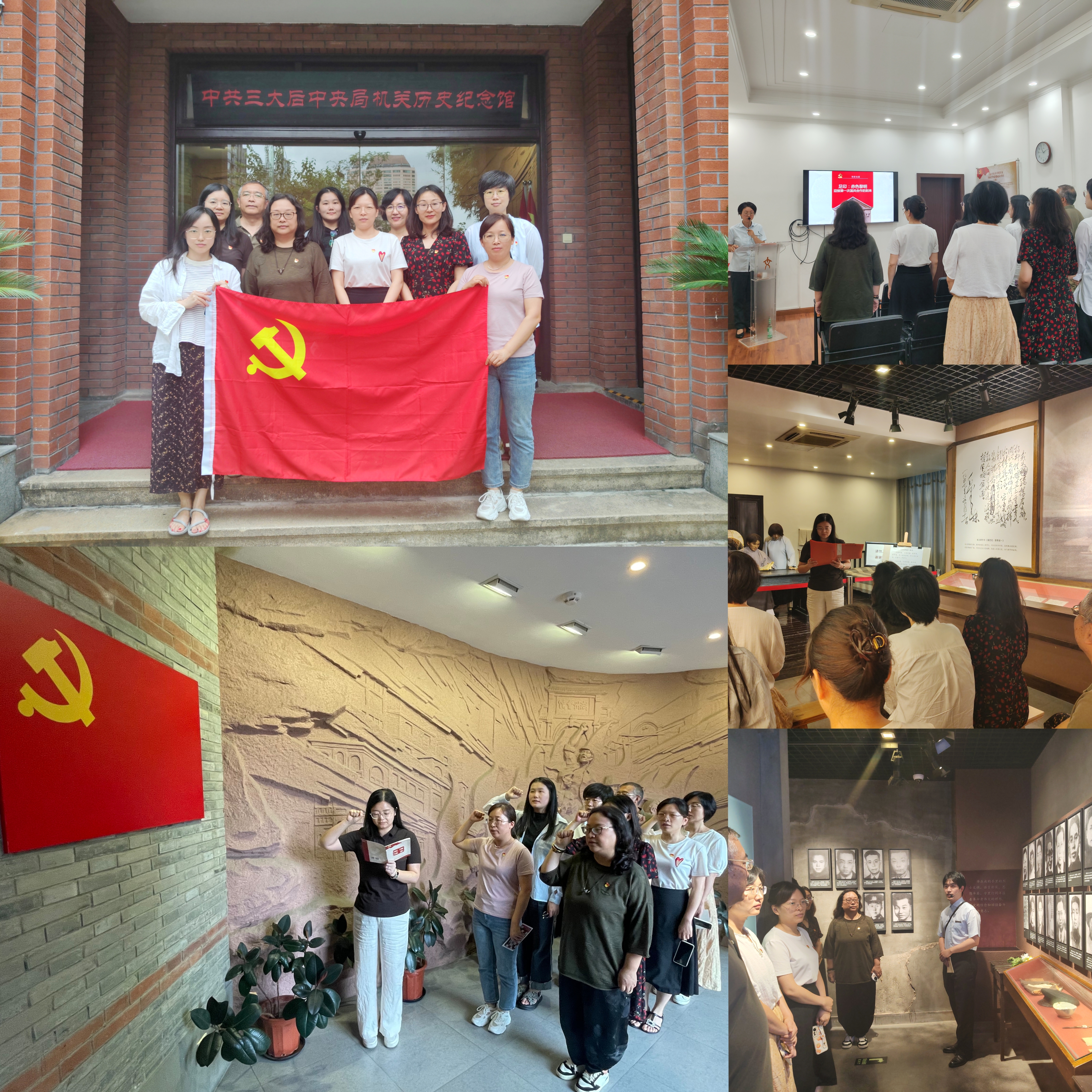 本次《足跡?赤色黎明》創(chuàng)意情景黨課由開課儀式、黨課聆聽、情景互動、重溫誓詞等4個環(huán)節(jié)組成。在開課儀式中,黨員們?nèi)w起立,莊重佩戴黨徽,強化黨性觀念。在黨課學(xué)習(xí)中,同志們凝神聆聽毛澤東、蔡和森、羅章龍和王荷波等中國共產(chǎn)黨早期領(lǐng)導(dǎo)人為迎接第一次國共合作,在“三曾里”不畏犧牲、開拓進取的奮斗歷程。在情景互動環(huán)節(jié),大家分角色領(lǐng)學(xué)《第一次國共合作的重要成果》、《創(chuàng)辦黃埔軍?!芳啊丁氨狈ボ姼琛钡挠蓙怼返赛h史,齊學(xué)共唱“北伐軍歌”。在密室逃脫中,同志們“化身”成為“三曾里”的地下工作者,按圖索驥找線索,里應(yīng)外合傳遞情報,群策群力破解密碼,成功逃離密室完成匯合。最后,大家齊聚紀念館大廳,在支部書記袁園同志的帶領(lǐng)下,面向鮮紅的黨旗,重溫入黨誓詞。