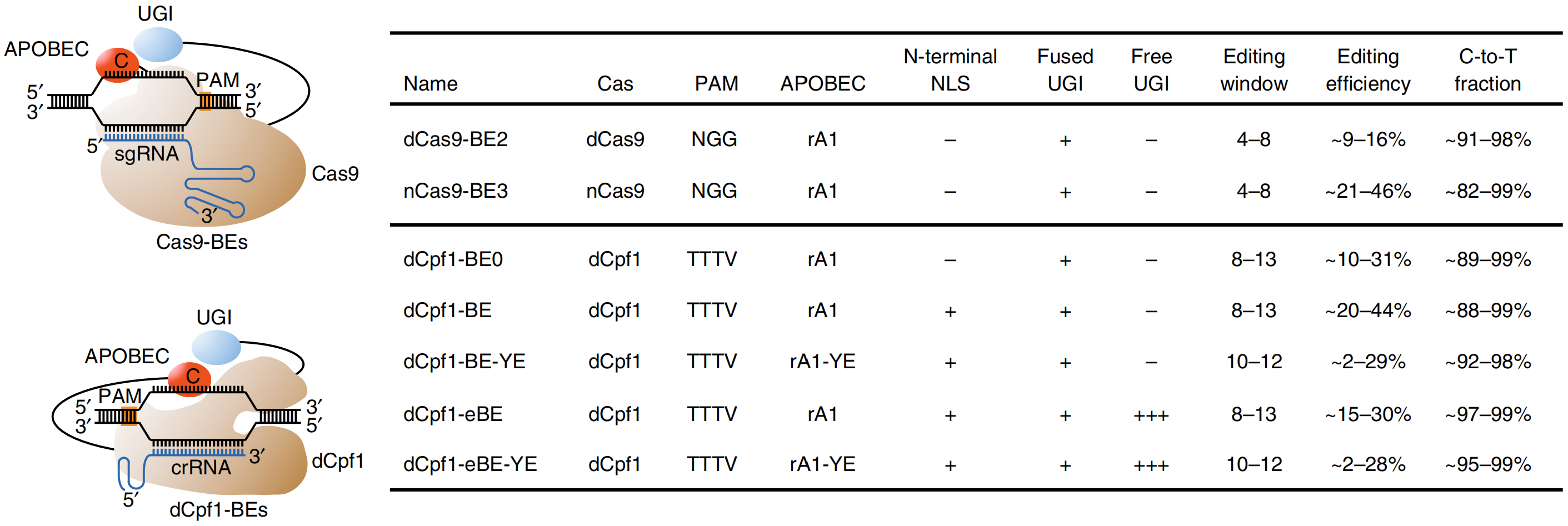 Cas9堿基編輯器與Cpf1堿基編輯器的特點比較