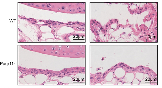 圖2:Paqr11基因敲除后類風(fēng)濕性關(guān)節(jié)炎發(fā)病程度明顯降低