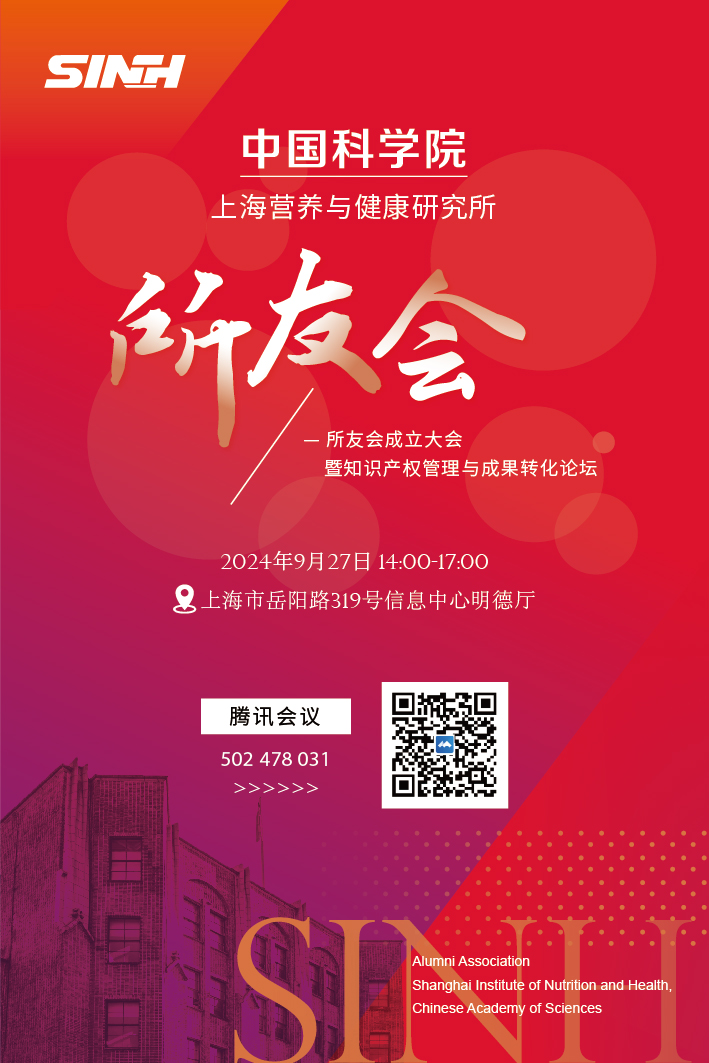 邀您線下/線上參會(huì)!中國(guó)科學(xué)院上海營(yíng)養(yǎng)與健康研究所所友會(huì)成立大會(huì)暨知識(shí)產(chǎn)權(quán)管理與成果轉(zhuǎn)化論壇