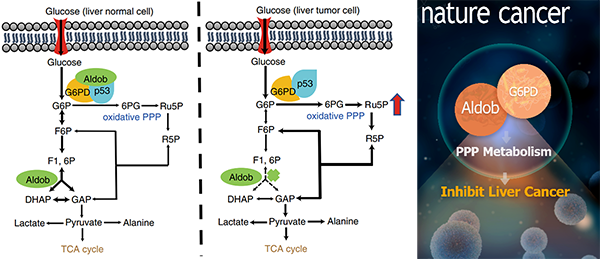 2020年7月6日,國(guó)際學(xué)術(shù)期刊Nature Cancer在線發(fā)表了中國(guó)科學(xué)院上海營(yíng)養(yǎng)與健康研究所尹慧勇研究組題為“Aldolase B Suppresses Hepatocellular Carcinogenesis by Inhibiting G6PD and Pentose Phosphate Pathways”的最新研究成果,首次闡明了果糖-1,6-二磷酸(Fructose-1,6-bis-phosphate,F(xiàn)BP)醛縮酶B(Aldolase B, Aldob)在調(diào)控肝癌代謝重編程(Metabolic reprogramming)中的作用、機(jī)理及臨床意義。