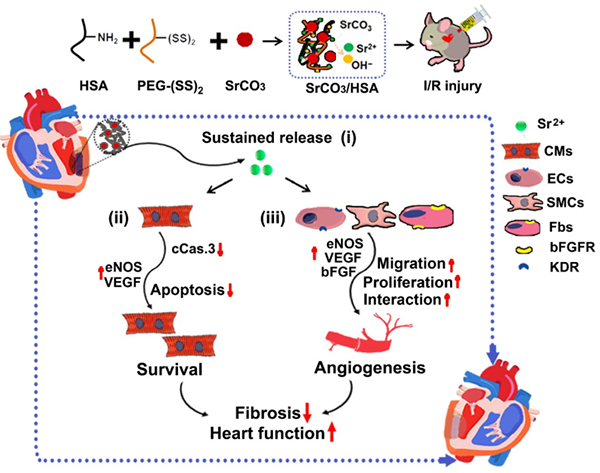 圖. Sr2+水凝膠對(duì)心肌梗死修復(fù)作用模式圖