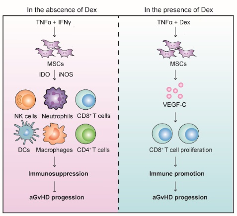 圖:地塞米松促進(jìn)MSCs表達(dá)VEGF-C加重aGvHD