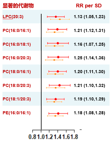 圖1. 基線血漿甘油磷脂與新發(fā)糖尿病風(fēng)險(xiǎn)的關(guān)聯(lián)關(guān)系