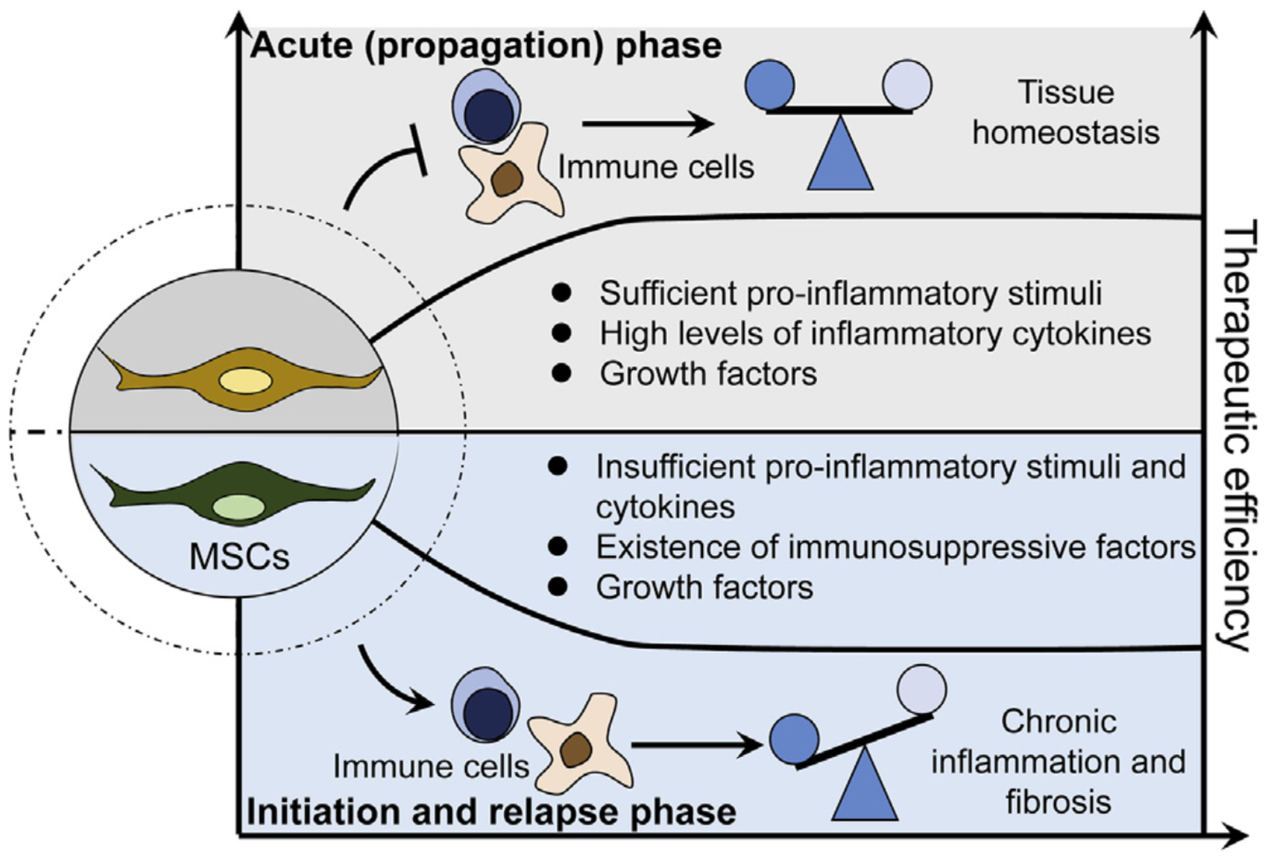 圖注:間充質(zhì)干細胞(mesenchymal stem cells, MSCs)免疫調(diào)節(jié)可塑性及其在炎癥性疾病治療中的應(yīng)用潛能。