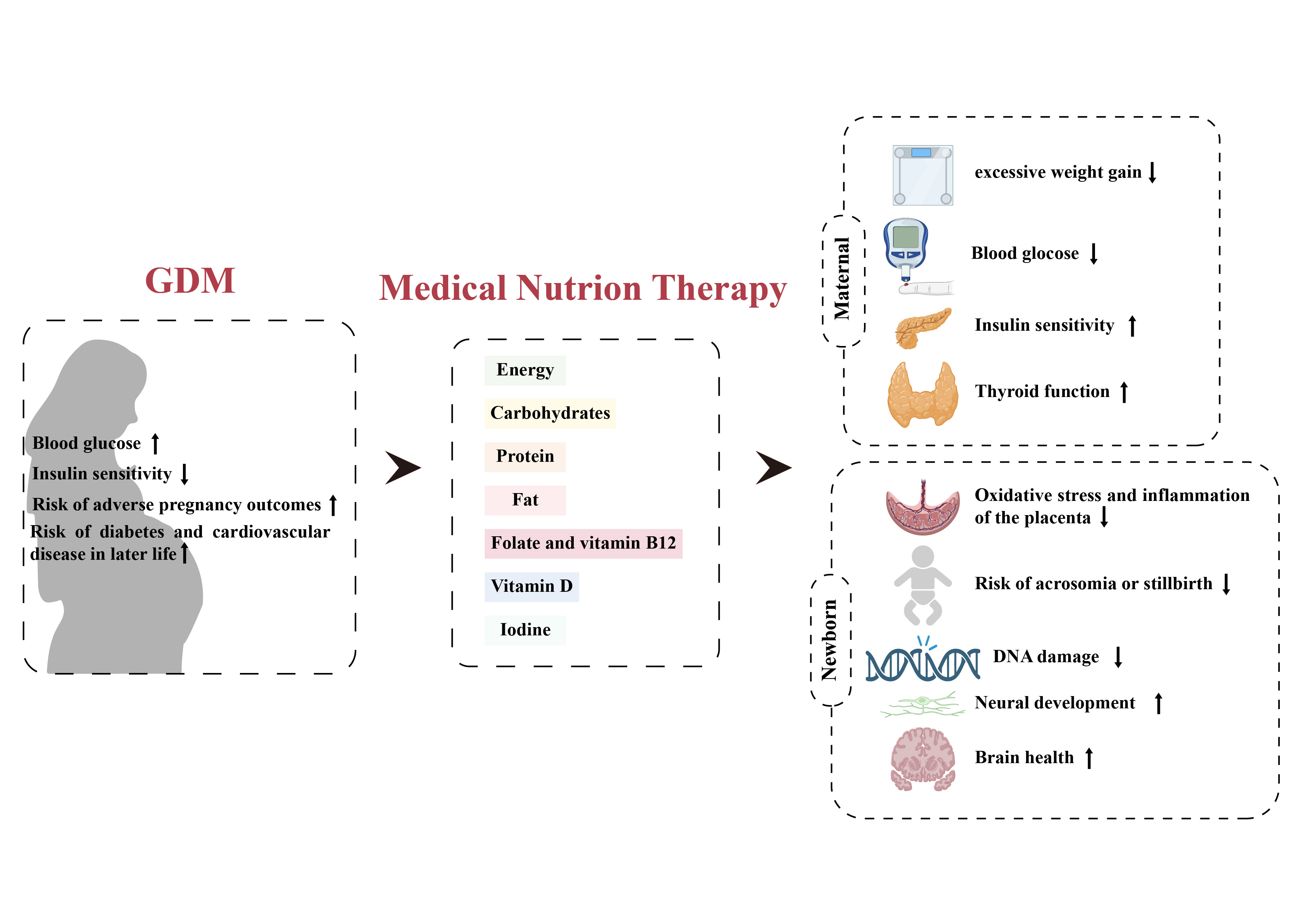 (注:妊娠期糖尿病期間使用醫(yī)學(xué)營(yíng)養(yǎng)治療對(duì)孕產(chǎn)婦的血糖維持、妊娠結(jié)局和胎兒生長(zhǎng)發(fā)育的積極作用)
