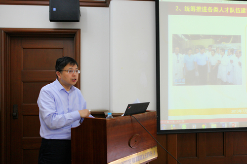 主題報(bào)告板塊中,倪福弟作了《落實(shí)系列講話精神,建設(shè)科技人才高地——習(xí)近平總書記的人才觀》主題報(bào)告。報(bào)告從“把握人才工作規(guī)律”入手,介紹了十八大以來(lái)習(xí)近平總書記關(guān)于人才觀的諸多論述,并帶領(lǐng)與會(huì)人員學(xué)習(xí)了中央《關(guān)于深化人才發(fā)展體制機(jī)制改革的意見》《中國(guó)科學(xué)院“十三五”人才高地建設(shè)規(guī)劃》和中科院人才工作會(huì)議精神。他指出,黨員干部要牢固樹立“四個(gè)意識(shí)”,不斷增強(qiáng)自身責(zé)任感、使命感、緊迫感,進(jìn)一步踐行習(xí)近平總書記系列重要講話精神,落實(shí)中科院關(guān)于人才工作的各項(xiàng)要求,不斷引進(jìn)和培養(yǎng)優(yōu)秀人才,注重創(chuàng)新團(tuán)隊(duì)建設(shè),促進(jìn)核心競(jìng)爭(zhēng)力持續(xù)提升,構(gòu)建適應(yīng)研究院發(fā)展戰(zhàn)略的科技人才高地。