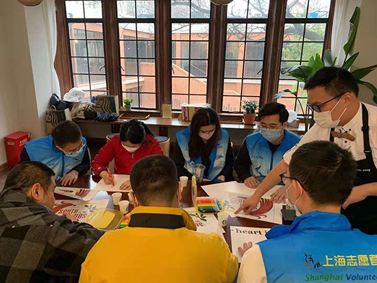 在“3 5學雷鋒”日,上海營養(yǎng)與健康研究所團委組織研究生志愿者開展公益活動,幫助來自“陽光之家”的殘障青年兒童制作創(chuàng)意畫。