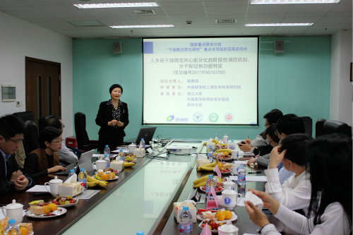 楊黃恬首先對(duì)專家組的指導(dǎo)、上??莆约氨締挝坏闹С直硎靖兄x,并對(duì)項(xiàng)目的立項(xiàng)依據(jù)、工作基礎(chǔ)、工作目標(biāo)、預(yù)期成果、研究團(tuán)隊(duì)與組織機(jī)制、主要研究進(jìn)展等方面進(jìn)行了系統(tǒng)闡釋和工作部署。隨后,各課題負(fù)責(zé)人報(bào)告了項(xiàng)目的研究?jī)?nèi)容、考核指標(biāo)、課題方案和主要工作進(jìn)展。與會(huì)專家對(duì)項(xiàng)目研究的整體設(shè)計(jì)和各課題組的前期工作給予了充分肯定,并就項(xiàng)目實(shí)施的具體方案提出了諸多寶貴建議,為進(jìn)一步明確工作目標(biāo)、完善項(xiàng)目的研究?jī)?nèi)容、技術(shù)路線、發(fā)揮各項(xiàng)目團(tuán)隊(duì)的合作優(yōu)勢(shì)以及促進(jìn)干細(xì)胞治療的臨床轉(zhuǎn)化研究提供了重要參考。