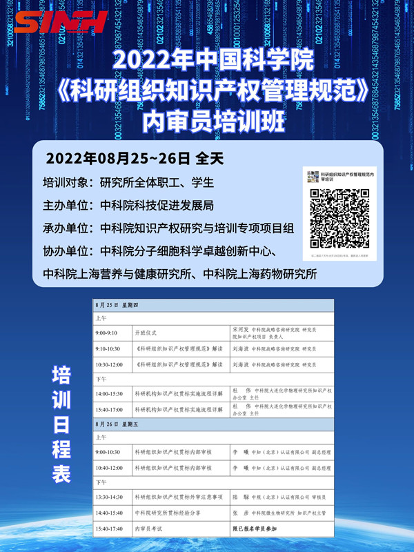 2022年中科院《科研組織知識產(chǎn)權(quán)管理規(guī)范》內(nèi)審員培訓(xùn)班