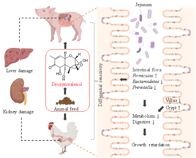 圖1. DON毒素在靶標(biāo)動物豬和肉雞中誘導(dǎo)的毒性損傷