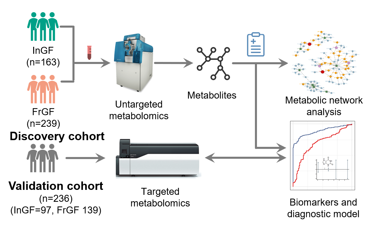 圖注: 利用代謝組學(xué)與機(jī)器學(xué)習(xí)研究頻發(fā)與偶發(fā)痛風(fēng)患者的血清代謝組差異并研發(fā)痛風(fēng)頻發(fā)風(fēng)險(xiǎn)預(yù)測模型