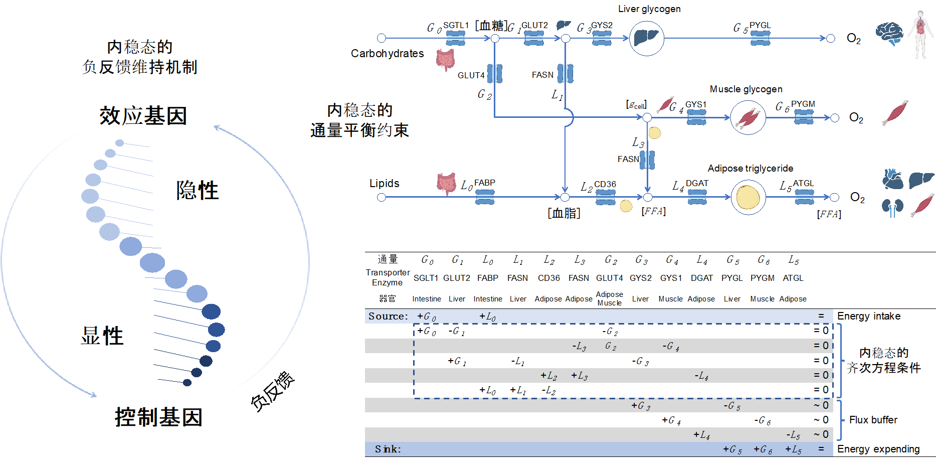 基因的劑量敏感性是判斷基因突變的顯隱性和遺傳疾病發(fā)病機制的關(guān)鍵依據(jù)。該項研究利用人群大數(shù)據(jù)首次在跨組織維度構(gòu)建了基因劑量敏感性度量,這一圖譜為判斷基因突變對人體健康的影響提供了系統(tǒng)性的參考。同時,該研究揭示了孟德爾遺傳顯隱性和生命系統(tǒng)內(nèi)穩(wěn)態(tài)的聯(lián)系,并對疾病的干預和治療提出了相應的啟示。以能量平衡為例,由于負反饋的機制,對效應基因(如葡萄糖轉(zhuǎn)運GLUT4/糖原合成GYS2/脂質(zhì)合成DGAT2)的劑量干預并不能影響系統(tǒng)的穩(wěn)態(tài)或糾正失衡狀態(tài)(即疾病狀態(tài)),對設定點(set-point)控制基因的干預(如葡萄糖感應GCK/能量感應AMPK/脂質(zhì)感應PPAR)能干擾內(nèi)穩(wěn)態(tài)或糾正失衡狀態(tài)。