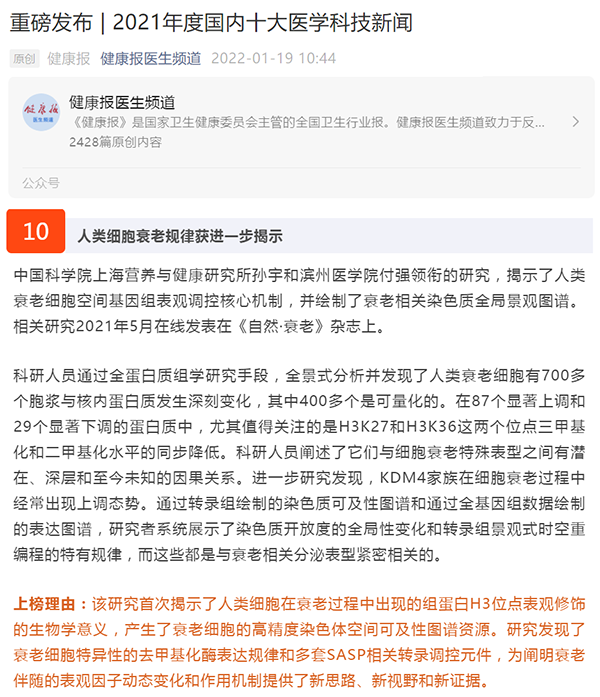 1月19日,由健康報(bào)社組織評選的2021年度中國十大醫(yī)學(xué)科技新聞揭曉。