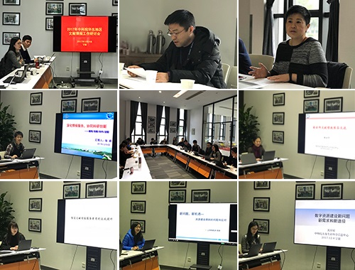 寧波材料所網(wǎng)絡(luò)信息中心主任汪洋和上海生命科學(xué)信息中心主任于建榮分別致辭。合肥物質(zhì)研究院信息中心張甫、南京古生物所圖書館張小萍、上海技物所圖書館葛逸倫、上海有機(jī)所圖書館邱婷、上海生命科學(xué)信息中心圖書館沈東婧等5位研究所代表作了報告,分別就“深化情報服務(wù),協(xié)同科研創(chuàng)新——服務(wù)/創(chuàng)新/協(xié)作/進(jìn)取”、“南古所文獻(xiàn)情報服務(wù)交流”、“館員文獻(xiàn)情報服務(wù)素質(zhì)的自我提升”、“新問題,新機(jī)遇——資源建設(shè)遇到的問題和應(yīng)對”、“數(shù)字資源建設(shè)新需求和新方案”等方向進(jìn)行了深入交流。會議還邀請了部分?jǐn)?shù)據(jù)庫商代表列席會議并參與探討。