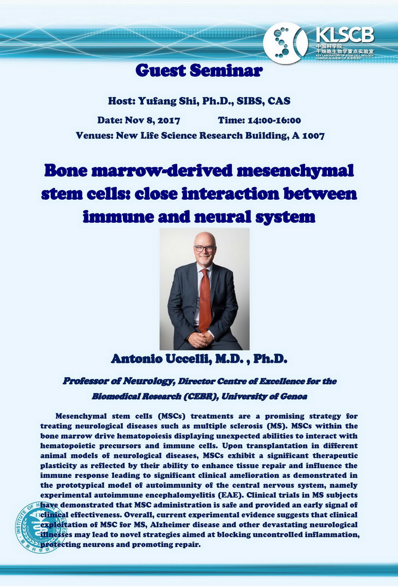 中科院干細胞生物學重點實驗室學術報告:Bone marrow-derived mesenchymal stem cells: close interaction between immune and neural system