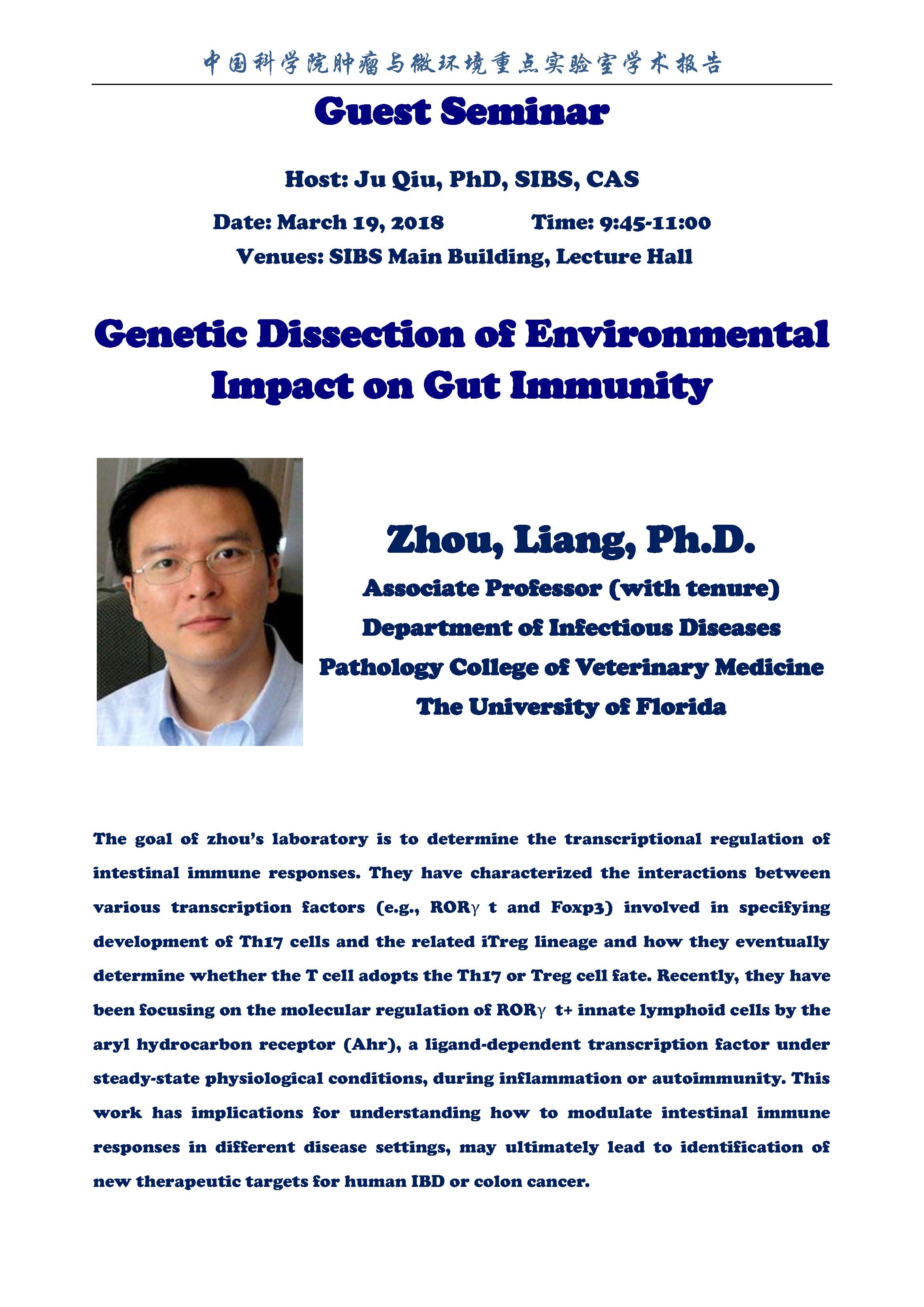 中科院腫瘤與微環(huán)境重點實驗室學術(shù)報告:Genetic Dissection of Environmental Impact on Gut Immunity