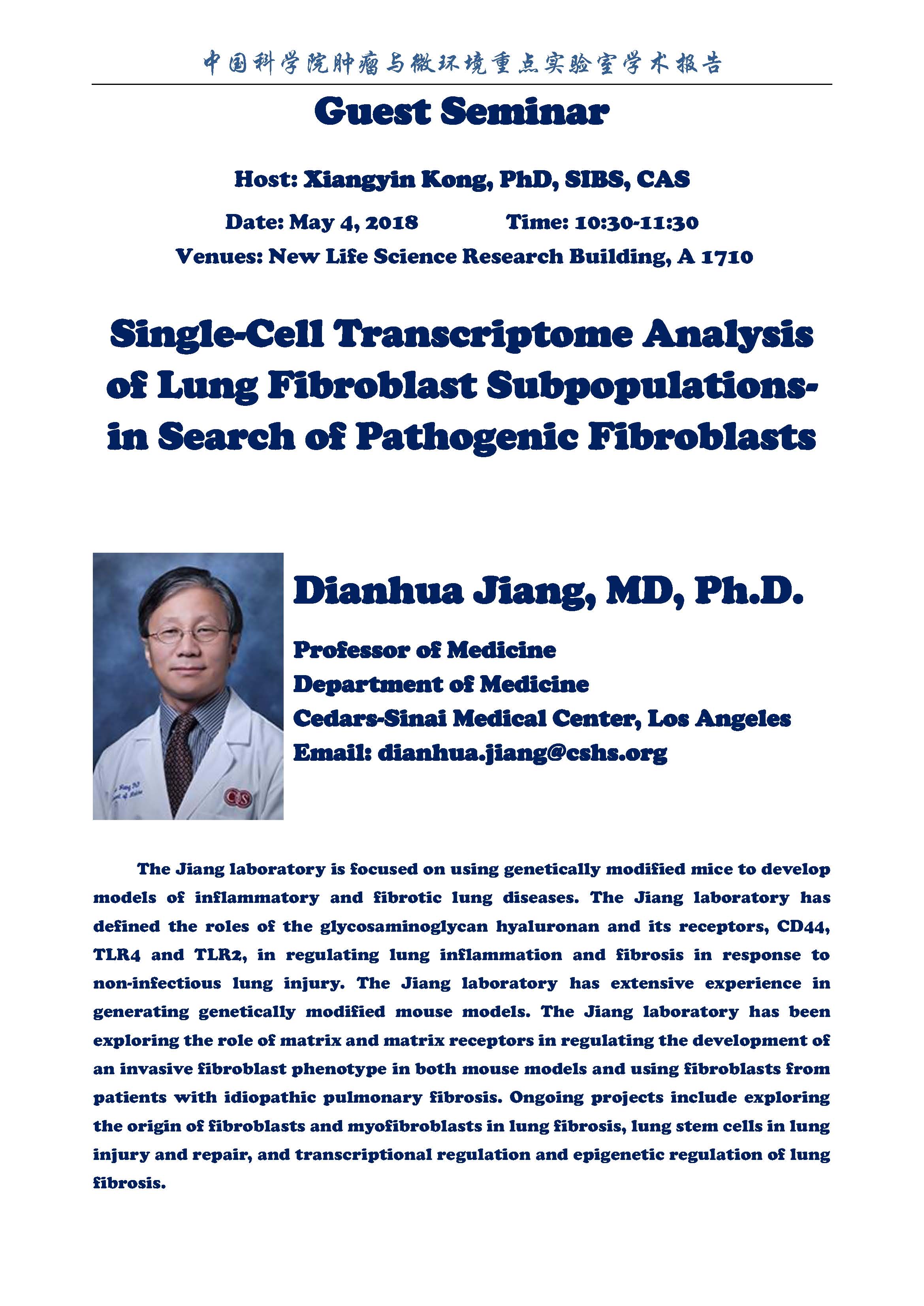 中科院腫瘤與微環(huán)境重點實驗室學(xué)術(shù)報告:Single-Cell Transcriptome Analysis of Lung Fibroblast Subpopulations-in Search of Pathogenic Fibroblasts