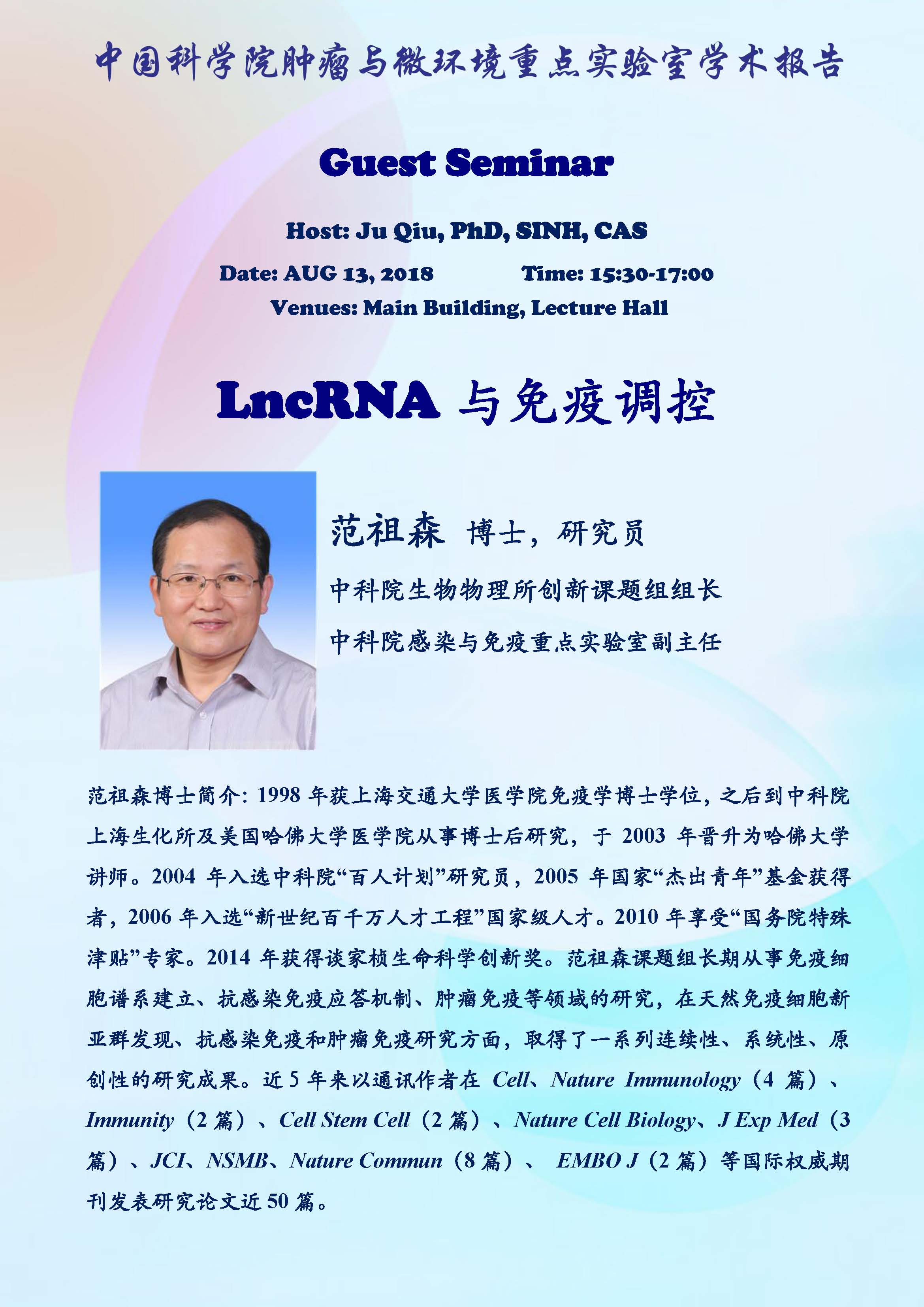 中科院腫瘤與微環(huán)境重點(diǎn)實驗室學(xué)術(shù)報告:LncRNA與免疫調(diào)控