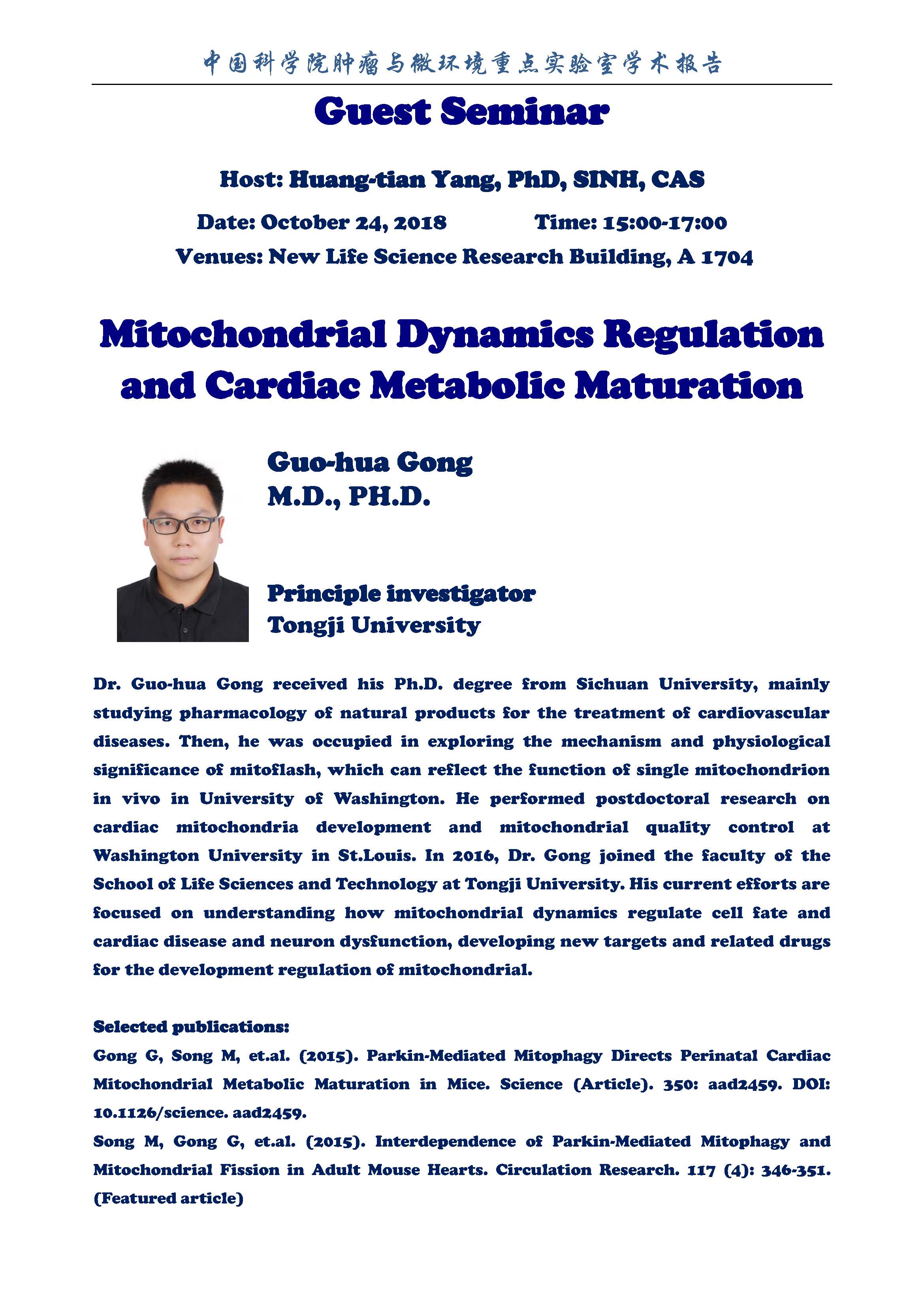 中科院腫瘤與微環(huán)境重點實驗室學(xué)術(shù)報告:Mitochondrial Dynamics Regulation and Cardiac Metabolic Maturation
