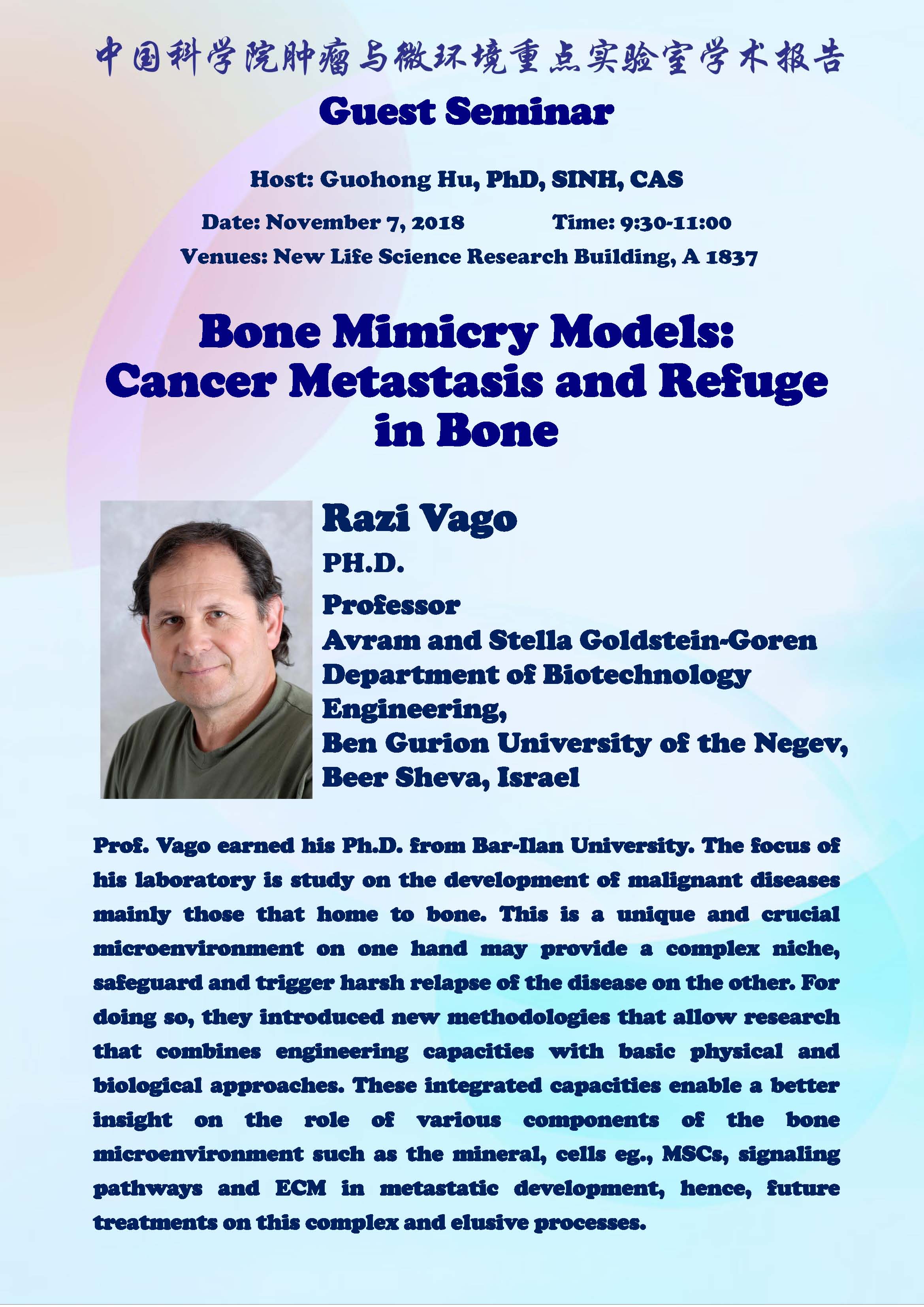 中科院腫瘤與微環(huán)境重點(diǎn)實(shí)驗(yàn)室學(xué)術(shù)報(bào)告:Bone Mimicry Models: Cancer Metastasis and Refuge in Bone