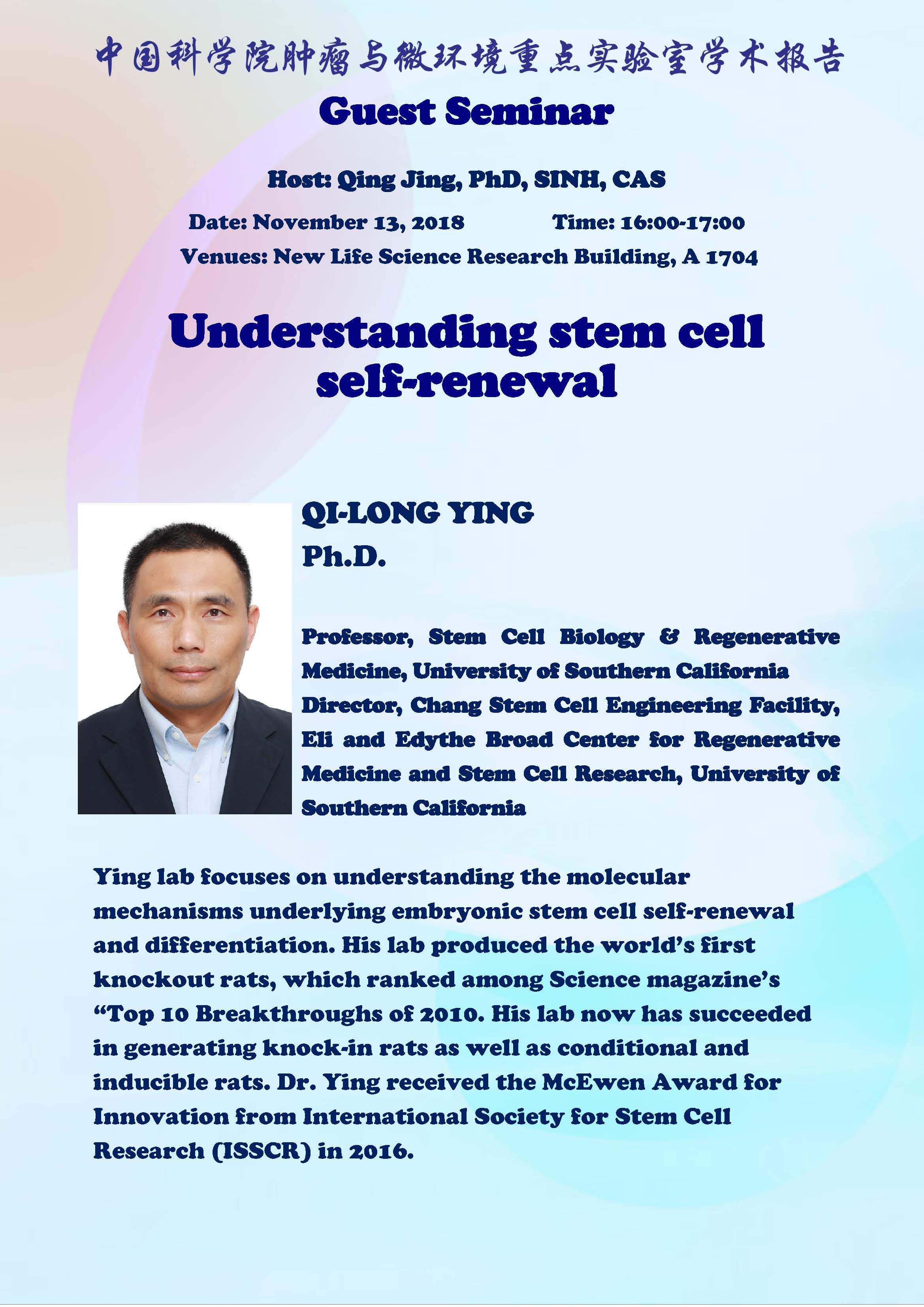 中科院腫瘤與微環(huán)境重點實驗室學術報告:Understanding stem cell self-renewal