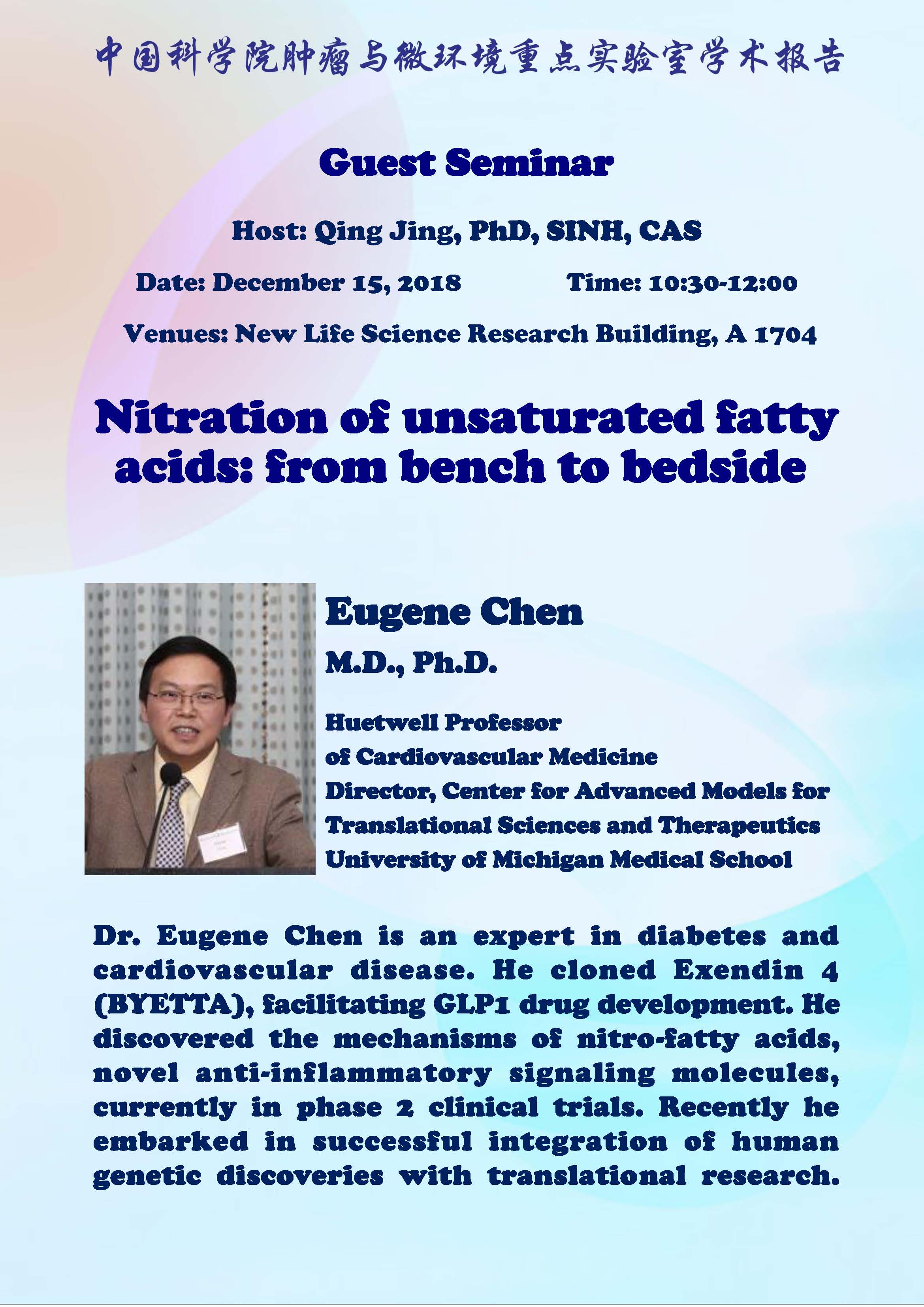 中科院腫瘤與微環(huán)境重點(diǎn)實(shí)驗(yàn)室學(xué)術(shù)報(bào)告:Nitration of unsaturated fatty acids: from bench to bedside