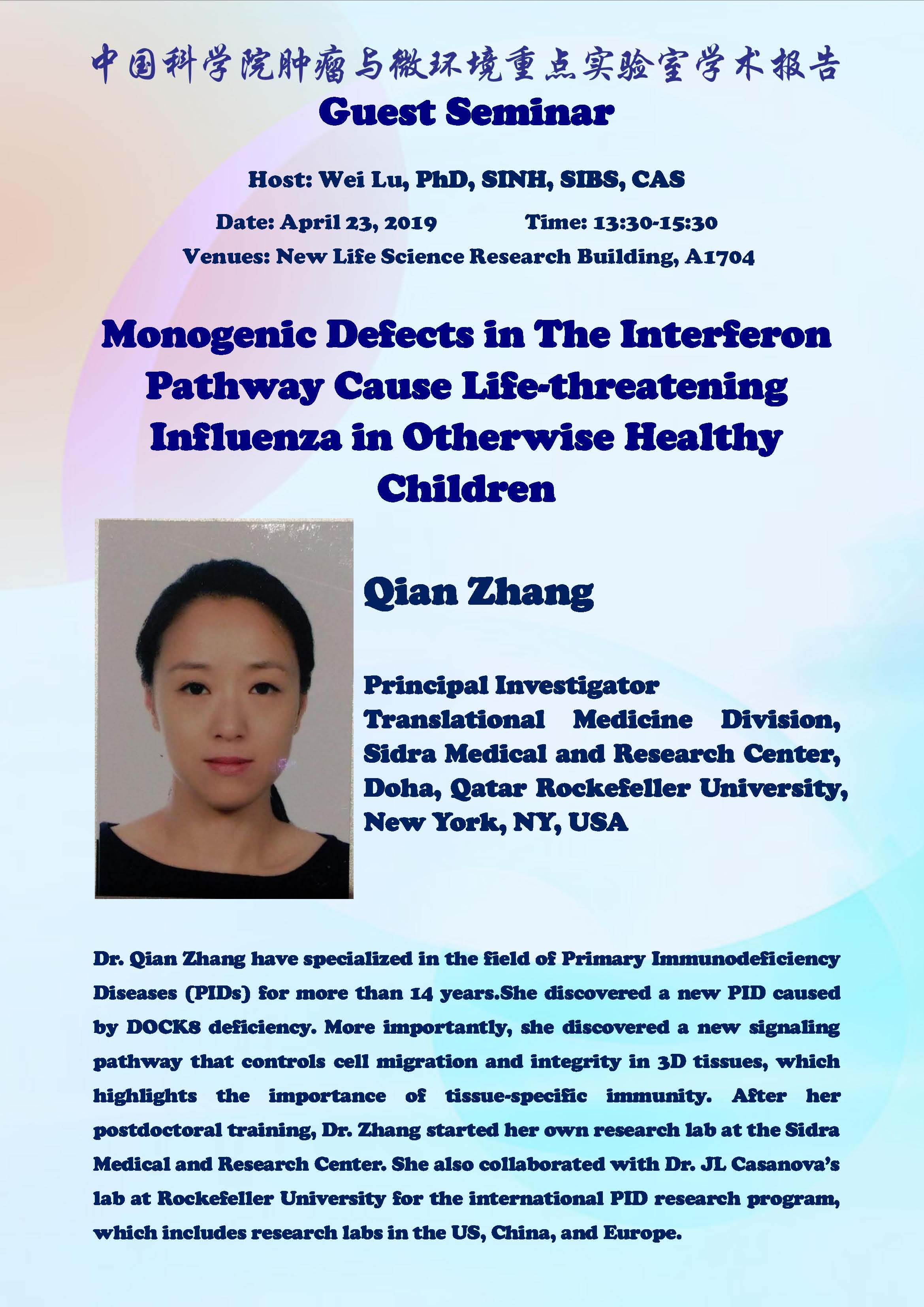 中科院腫瘤與微環(huán)境重點實驗室學(xué)術(shù)報告:Monogenic Defects in The Interferon Pathway Cause Life-threatening Influenza in Otherwise Healthy Children