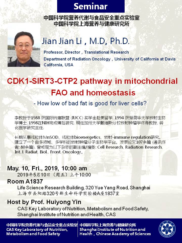 中科院營(yíng)養(yǎng)代謝與食品安全重點(diǎn)實(shí)驗(yàn)室學(xué)術(shù)報(bào)告:CDK1-SIRT3-CTP2 pathway in mitochondrial FAO and homeostasis