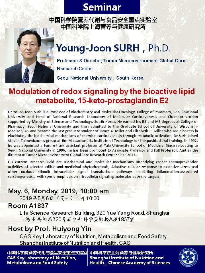 中科院營養(yǎng)代謝與食品安全重點(diǎn)實(shí)驗(yàn)室學(xué)術(shù)報(bào)告:Modulation of redox signaling by the bioactive lipid metabolite, 15-keto-prostaglandin E2