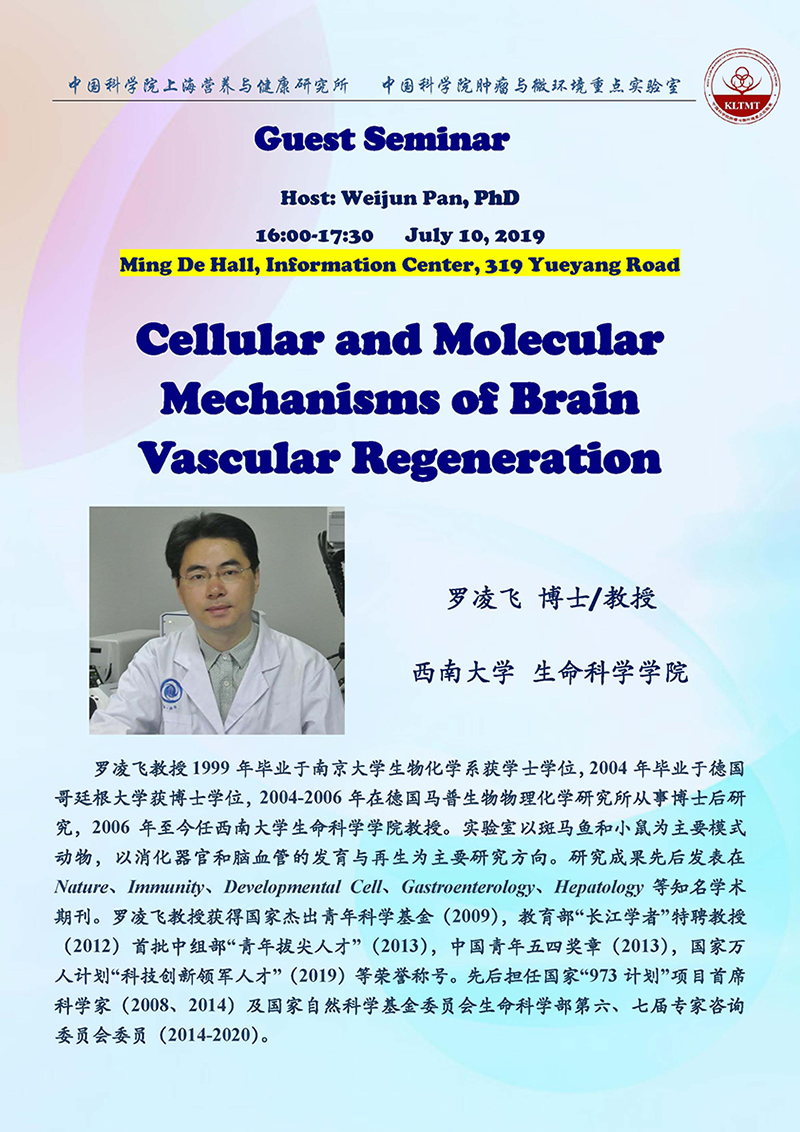 中科院上海營(yíng)養(yǎng)與健康研究所固定學(xué)術(shù)報(bào)告:Cellular and Molecular Mechanisms of Brain Vascular Regeneration