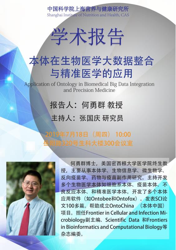 中科院上海營(yíng)養(yǎng)與健康研究所學(xué)術(shù)報(bào)告:本體在生物醫(yī)學(xué)大數(shù)據(jù)整合與精準(zhǔn)醫(yī)學(xué)的應(yīng)用