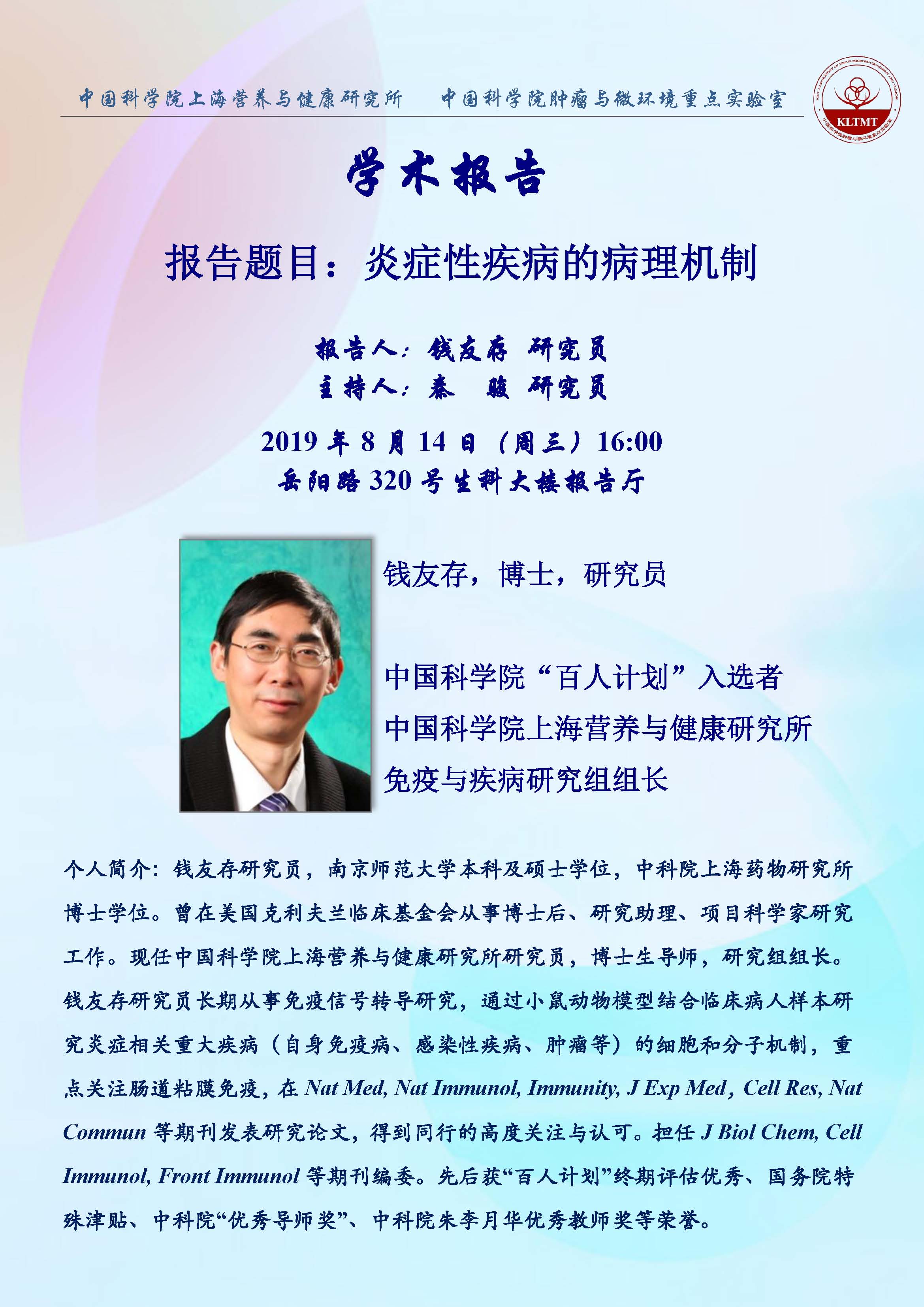 中科院上海營養(yǎng)與健康研究所固定學(xué)術(shù)報(bào)告:炎癥性疾病的病理機(jī)制