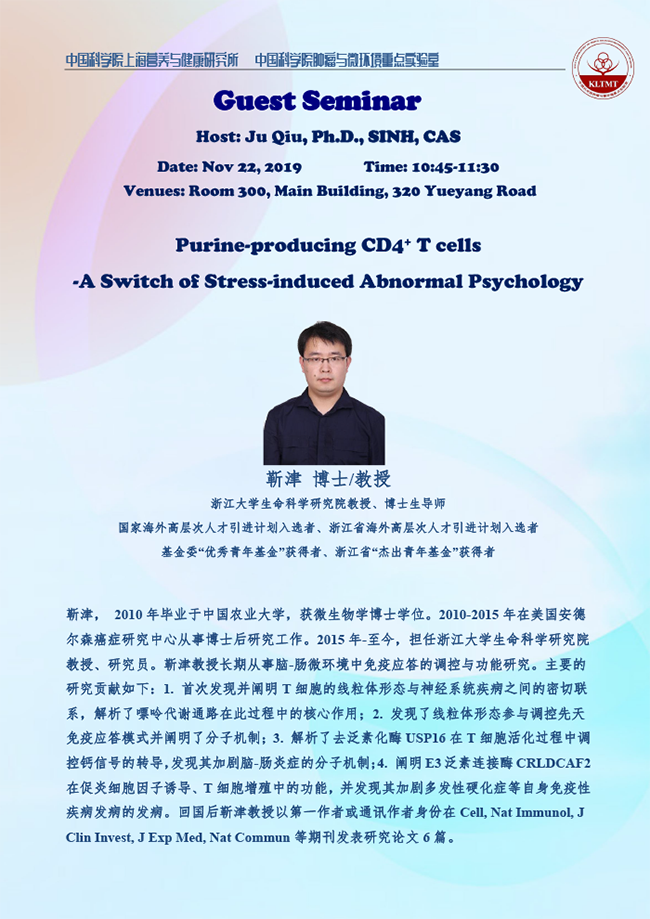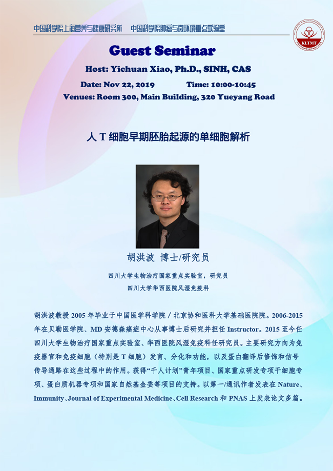 中科院腫瘤與微環(huán)境重點實驗室學術(shù)報告:人T細胞早期胚胎起源的單細胞解析 & Purine-producing CD4+ T cells -A Switch of Stress-induced Abnormal Psychology