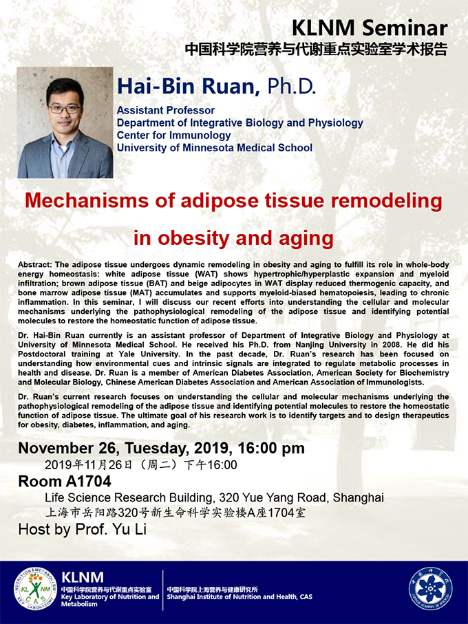 中國科學(xué)院營養(yǎng)代謝與食品安全重點實驗室學(xué)術(shù)報告:Mechanisms of adipose tissue remodeling in obesity and aging
