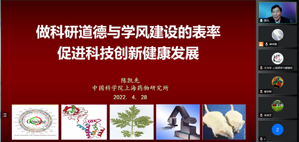 4月28日晚,“SINH學術云聚會” 又迎來一位重磅嘉賓,藥物化學家、上海藥物研究所研究員、中國科學院院士陳凱先應邀做客,與營養(yǎng)與健康所PI、博士后、研究生等分享做科研道德與學風建設的表率,促進科技創(chuàng)新健康發(fā)展。黨委書記、副所長瞿榮輝主持報告會,學術副所長陳雁、副所長胡國宏及師生員工近200人線上參會。
