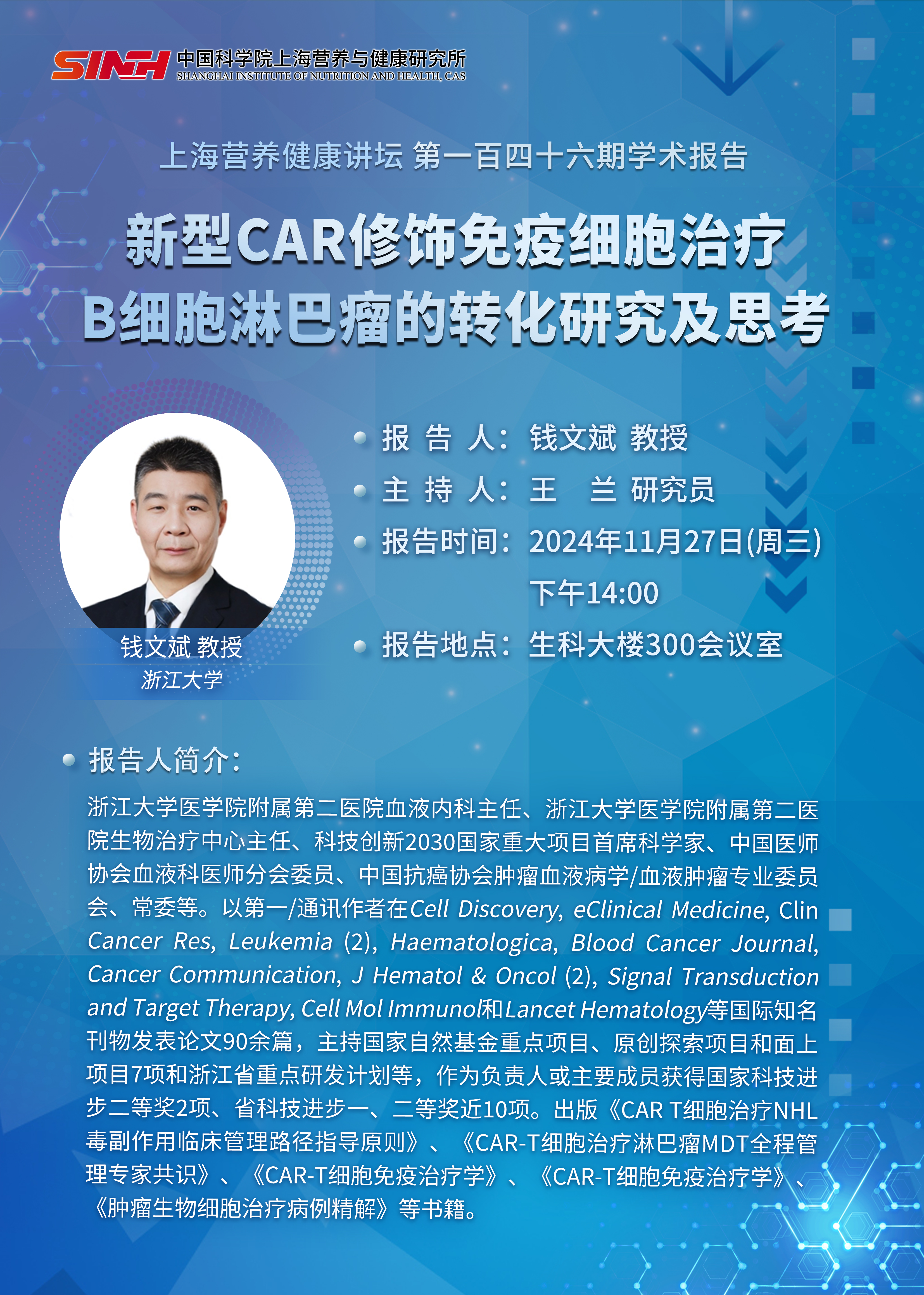上海營養(yǎng)健康講壇第一百四十六期學(xué)術(shù)報告