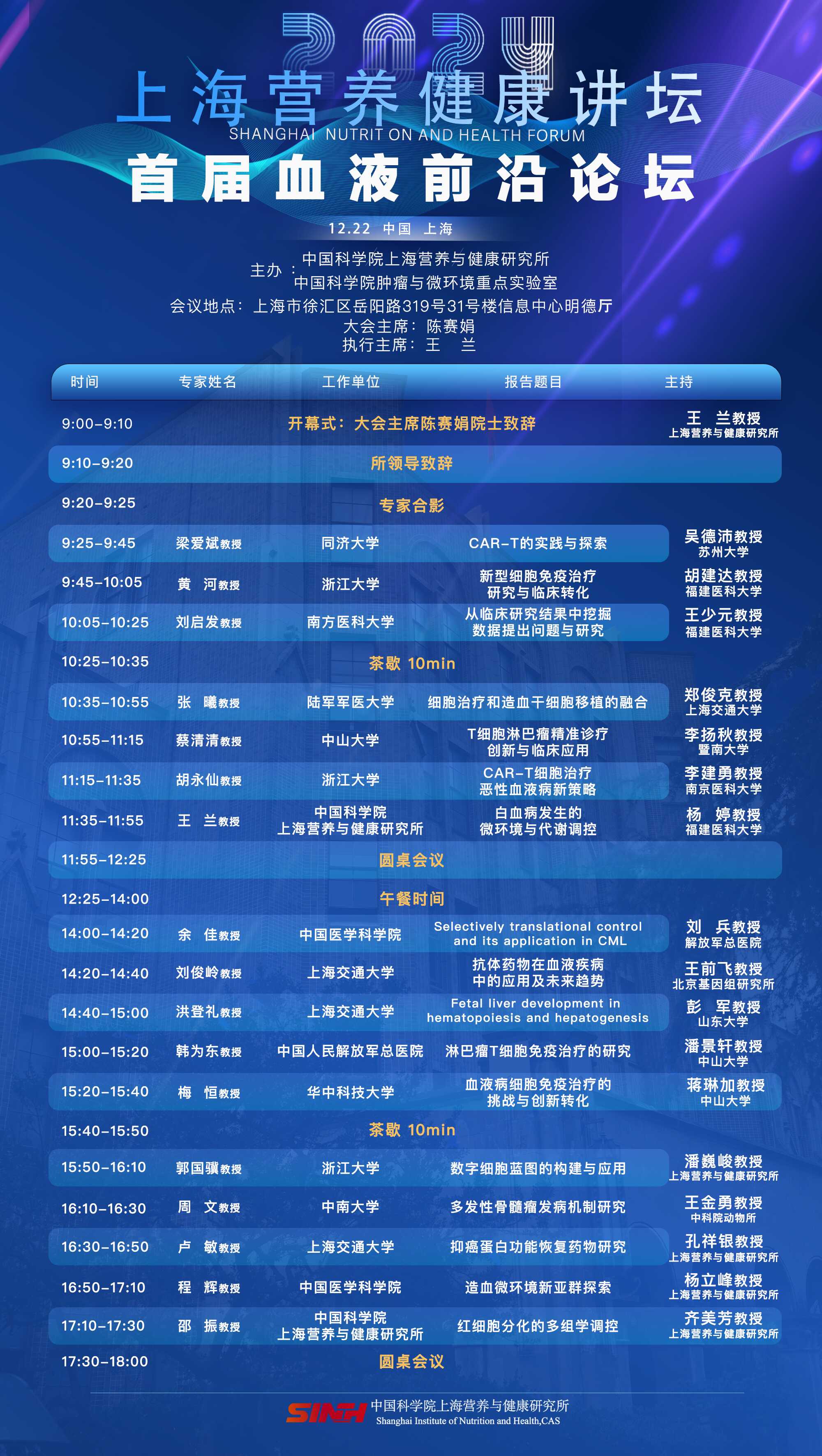 上海營養(yǎng)健康講壇首屆血液前沿論壇