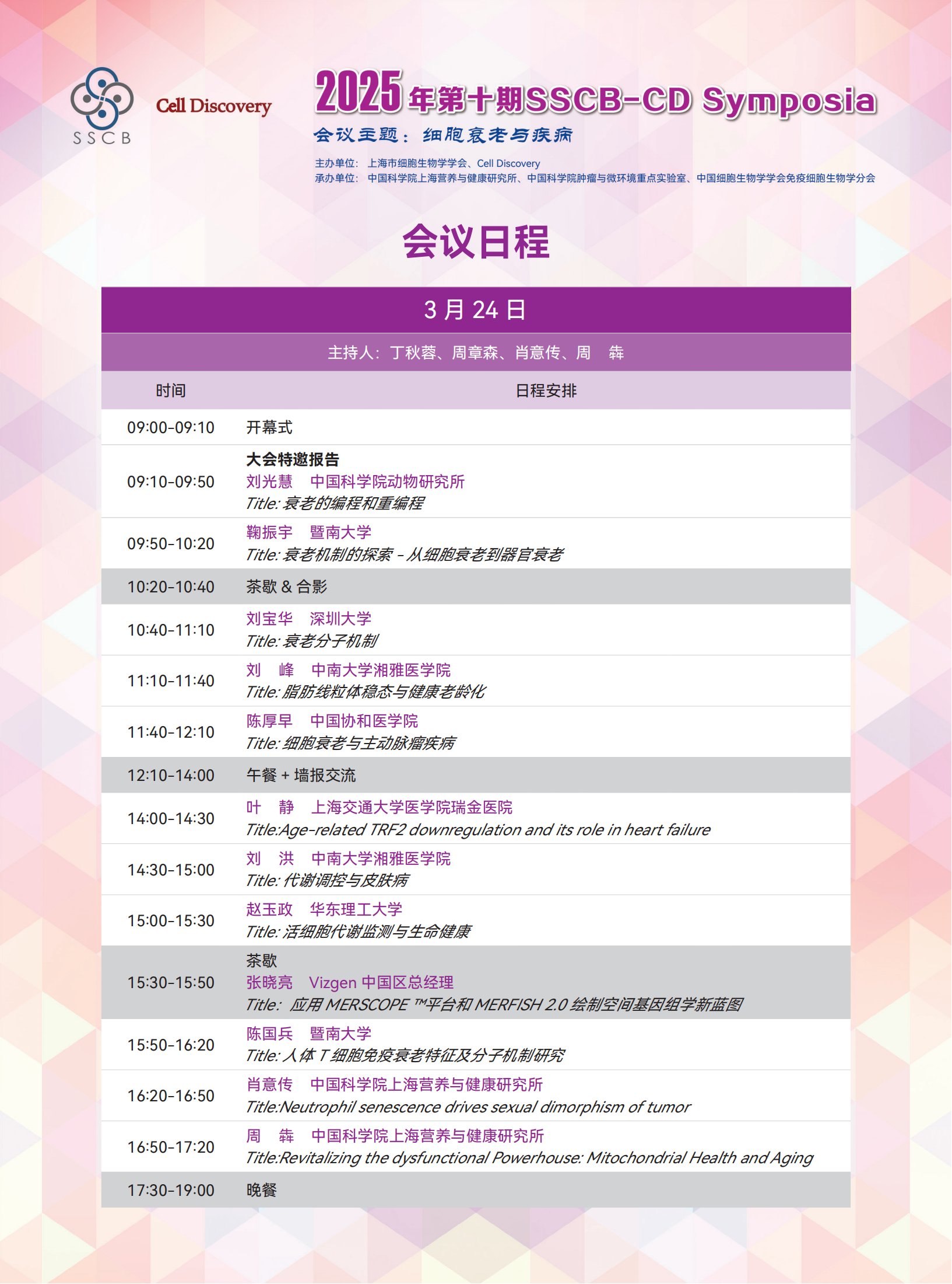 3月24-25日|細(xì)胞衰老與疾病大會(huì)——2025年第十期SSCB—CD?Symposia