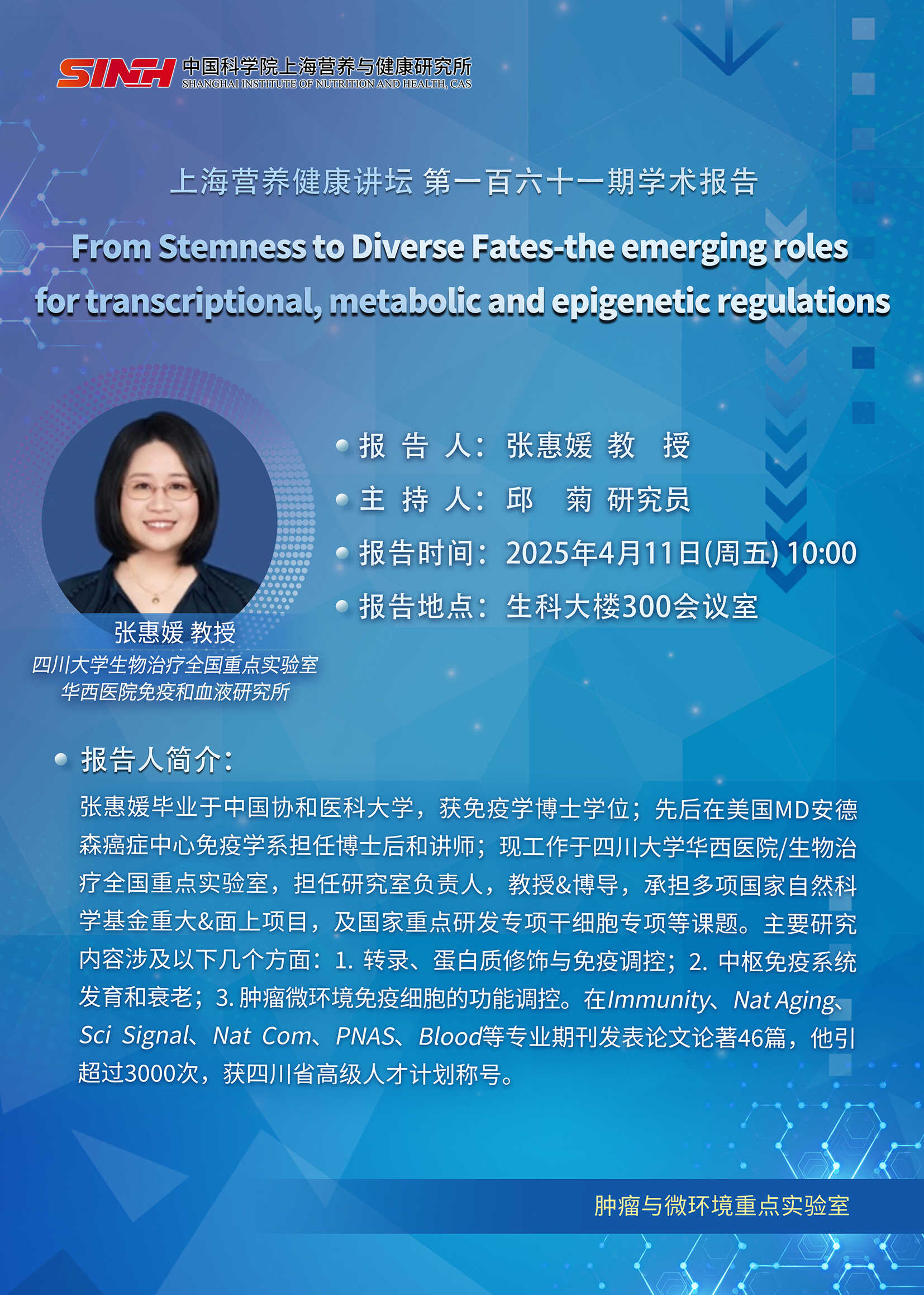 4月11日|From Stemness to Diverse Fates-the emerging roles for transcriptional, metabolic and epigenetic regulations-上海營(yíng)養(yǎng)健康講壇