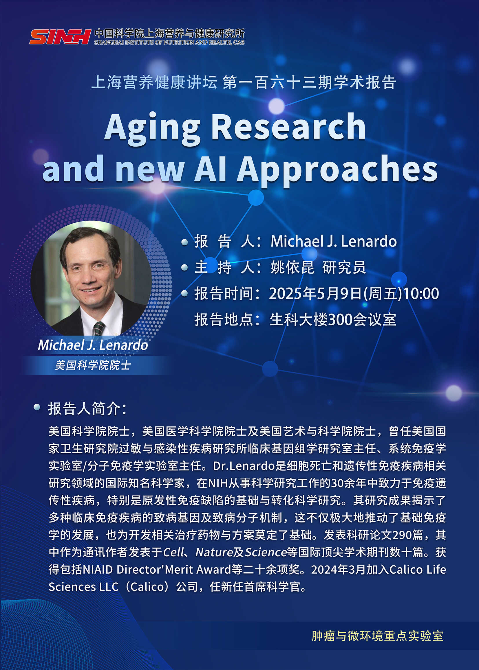 5月9日|Aging Research and New AI Approaches-上海營養(yǎng)健康講壇