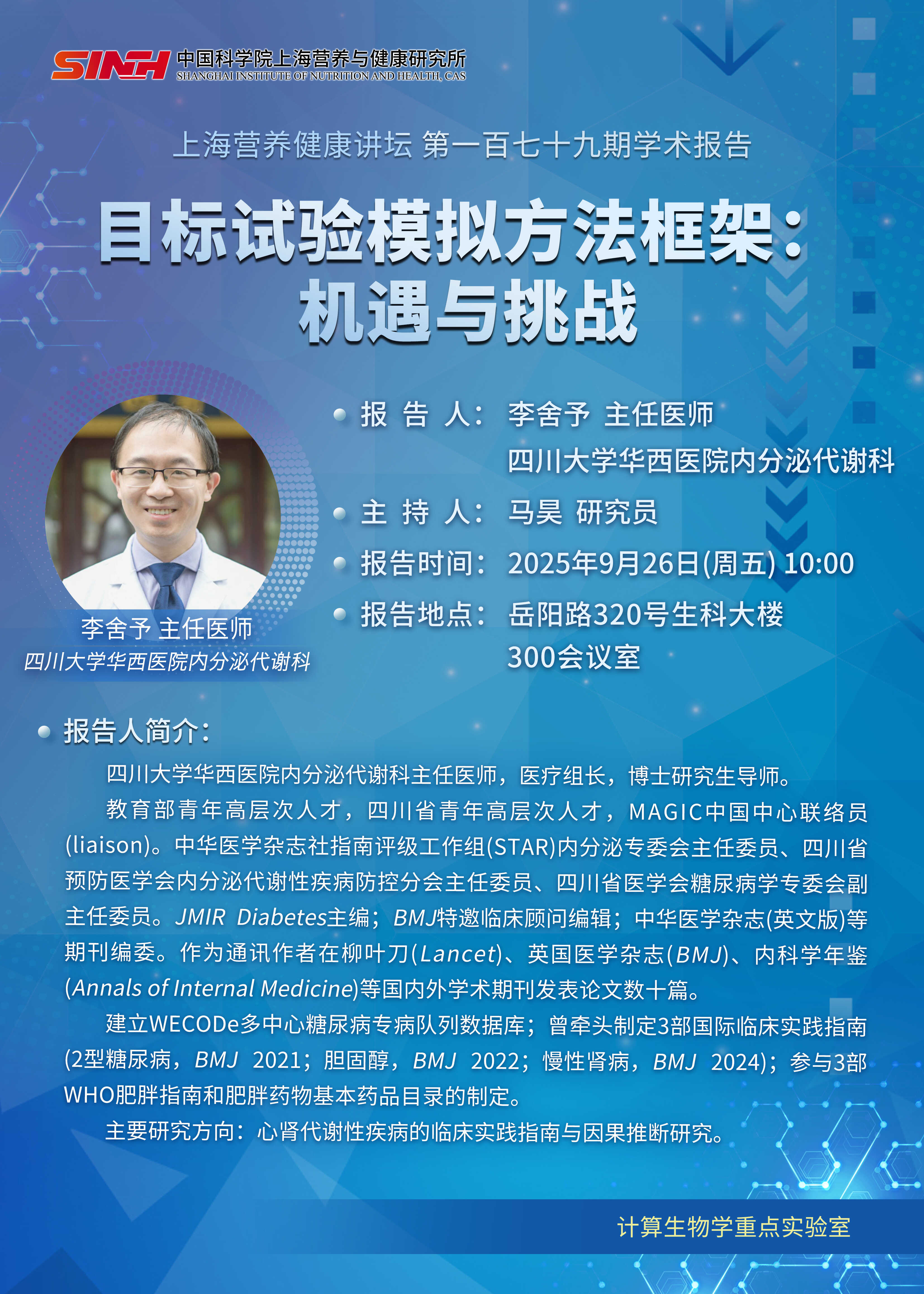 9月26日|目標(biāo)試驗?zāi)M方法框架:機遇與挑戰(zhàn)-上海營養(yǎng)健康講壇