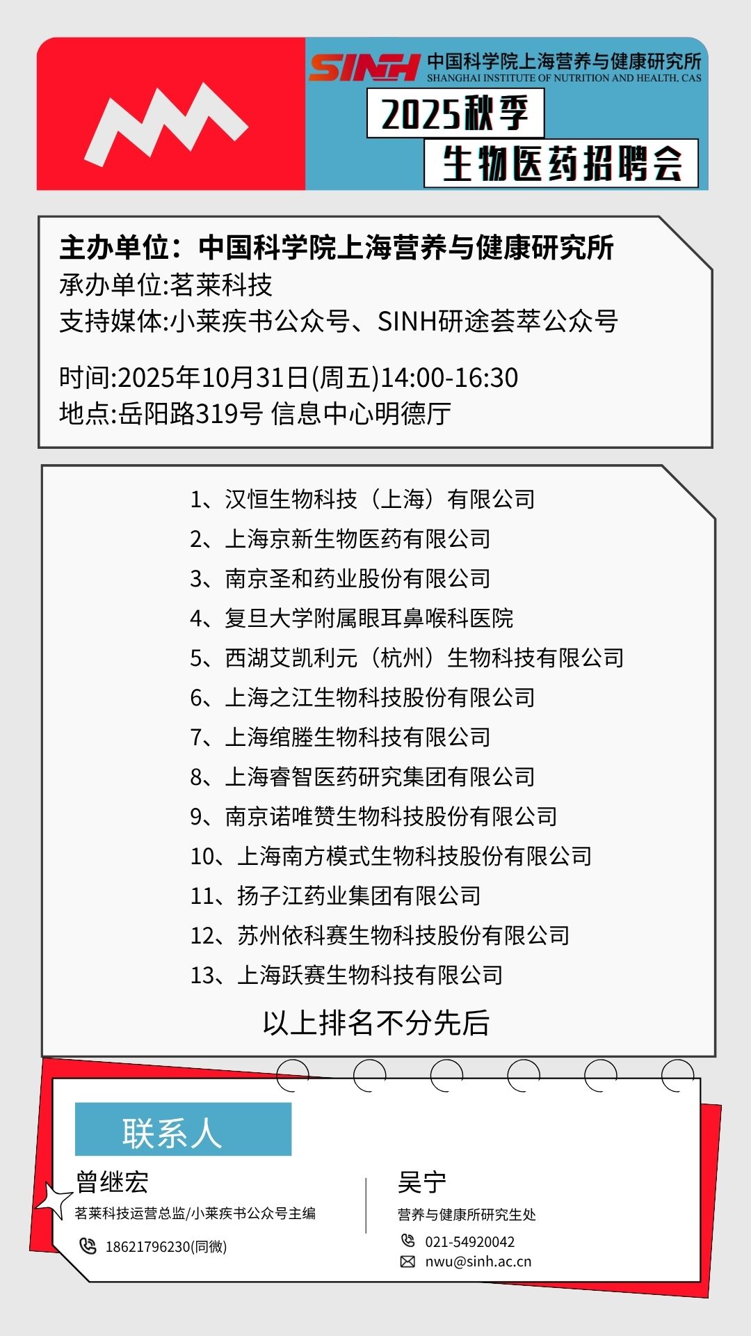 10月31日|2025秋季生物醫(yī)藥招聘會