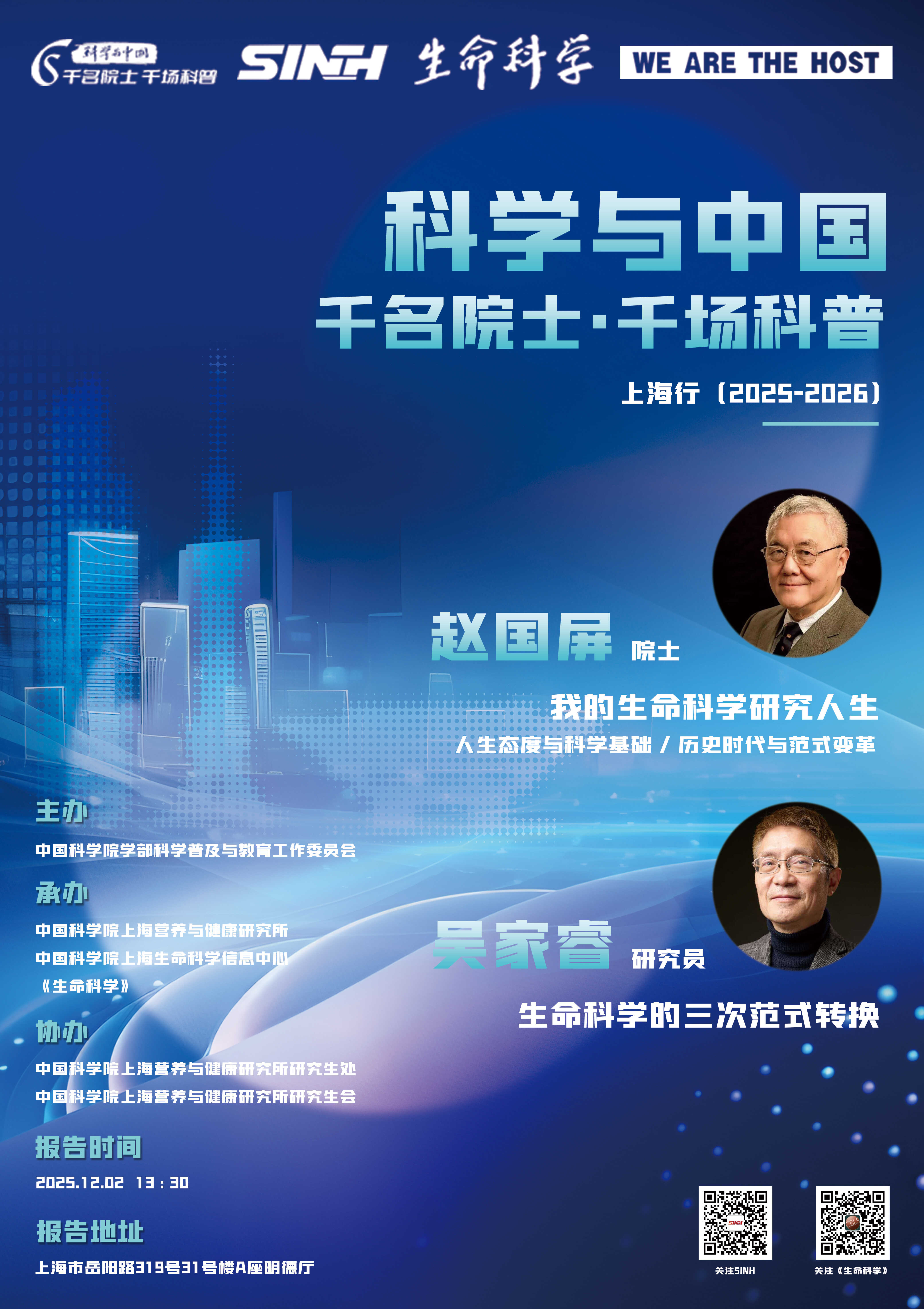 12月2日|“科學(xué)與中國——千名院士·千場科普”上海行