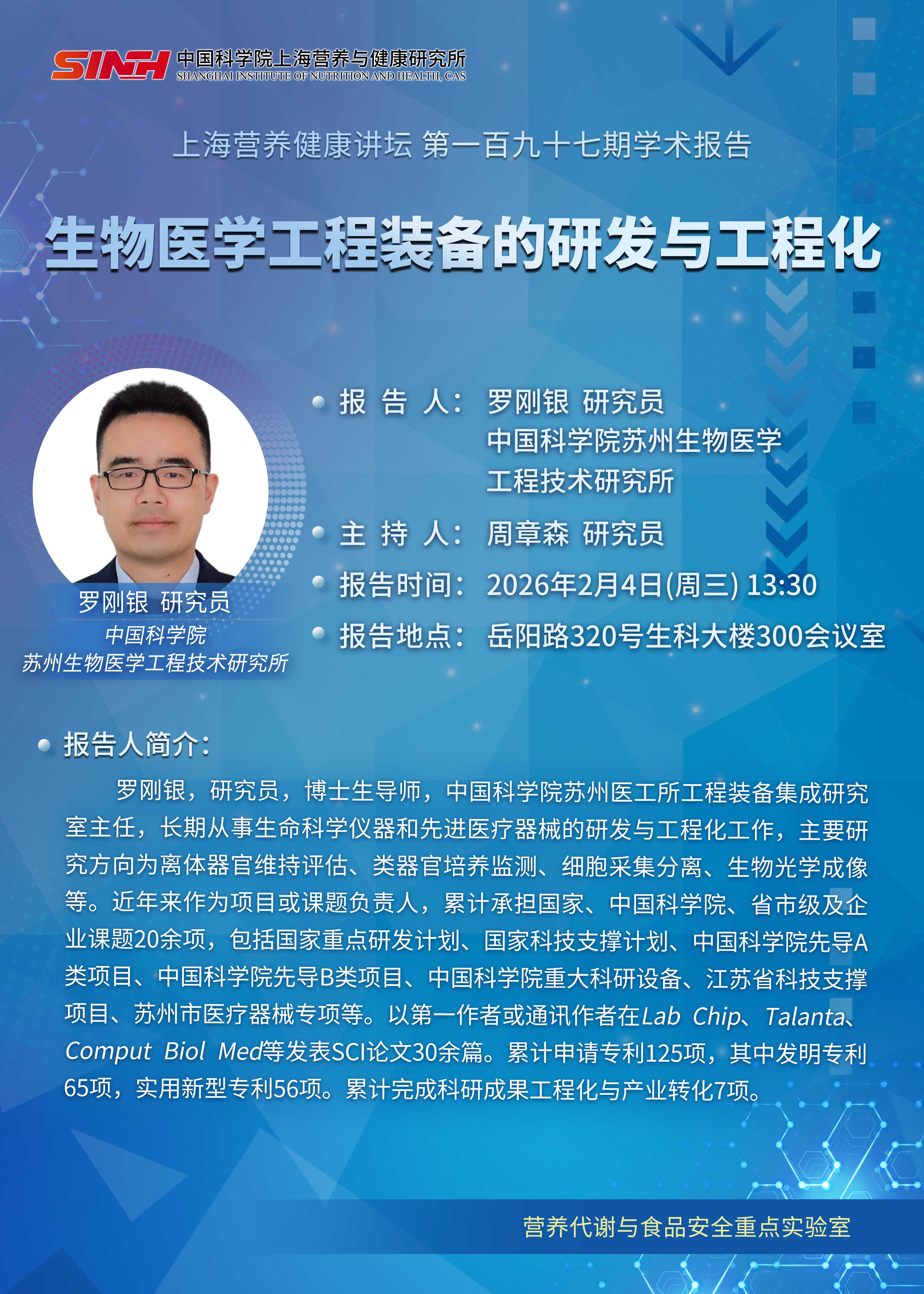 2月4日|生物醫(yī)學(xué)工程裝備的研發(fā)與工程化-上海營(yíng)養(yǎng)健康講壇