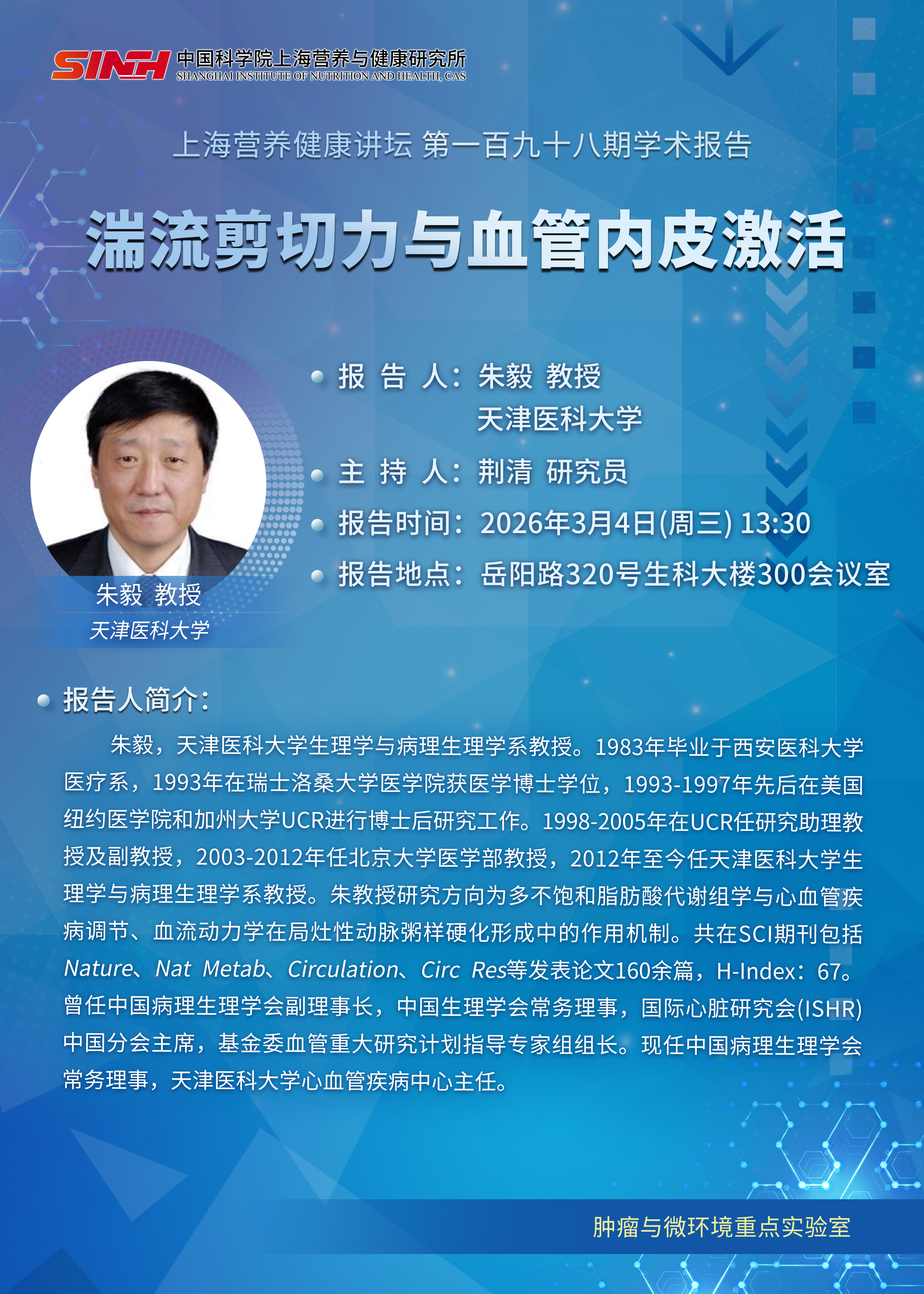 3月4日|湍流剪切力與血管內(nèi)皮激活-上海營(yíng)養(yǎng)健康講壇