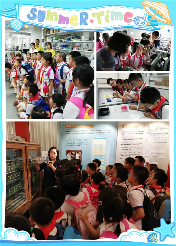 隨后,全體師生又來到分子細(xì)胞卓越創(chuàng)新中心參觀學(xué)習(xí)。在帶隊老師的引導(dǎo)下,分批次井然有序的參觀了紀(jì)念人工全合成結(jié)晶牛胰島素50周年展廳,感受老一輩科學(xué)家堅持不懈、艱苦奮斗、團(tuán)結(jié)合作的精神;在細(xì)胞分析技術(shù)平臺透過顯微鏡觀察放大之后的昆蟲標(biāo)本和多彩的生物細(xì)胞;分子生物學(xué)技術(shù)平臺的老師則為小朋友耐心講解有關(guān)生物分子的知識,并指導(dǎo)他們用移液槍繪制“愛心”圖案;參觀化學(xué)分析技術(shù)平臺的小朋友紛紛被快速運轉(zhuǎn)的機(jī)械手臂所吸引,還時不時地與平臺老師展開激烈的“討論”,收獲頗豐。